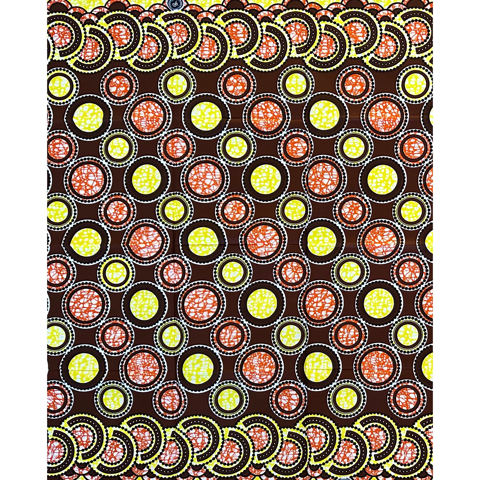 African Print Fabric/ Ankara - Orange, Yellow, Brown ‘Sola Count' Design, 1 YARD