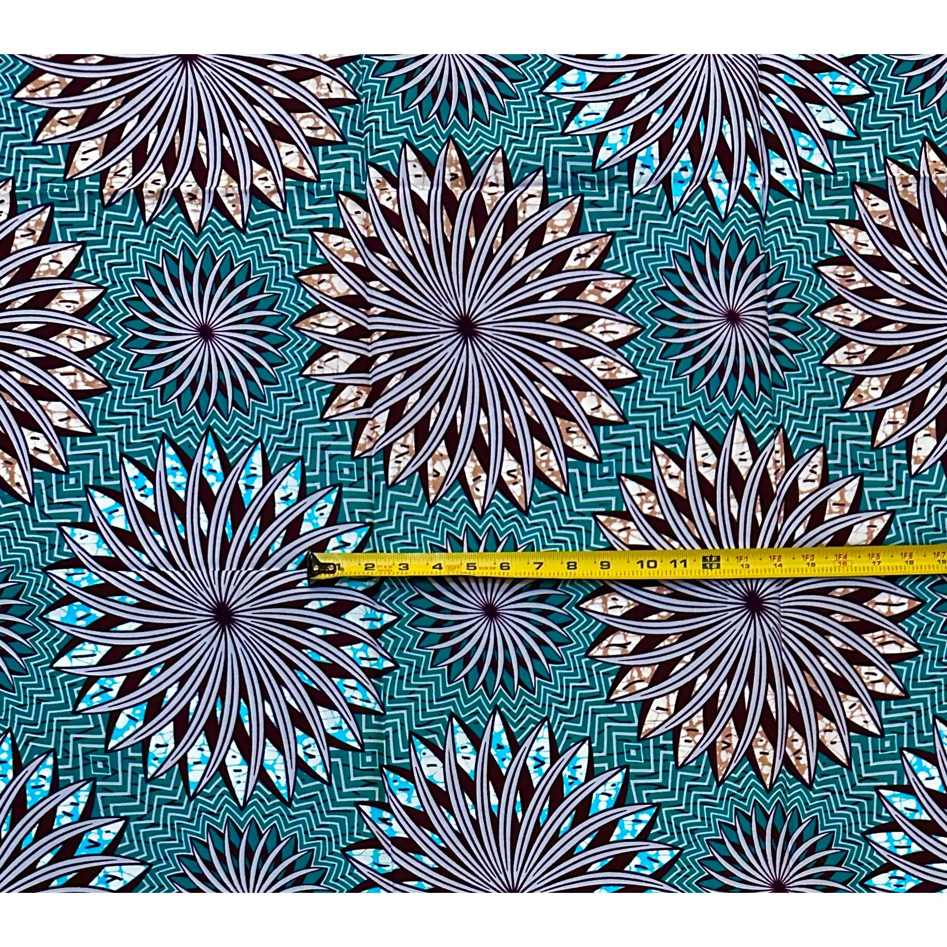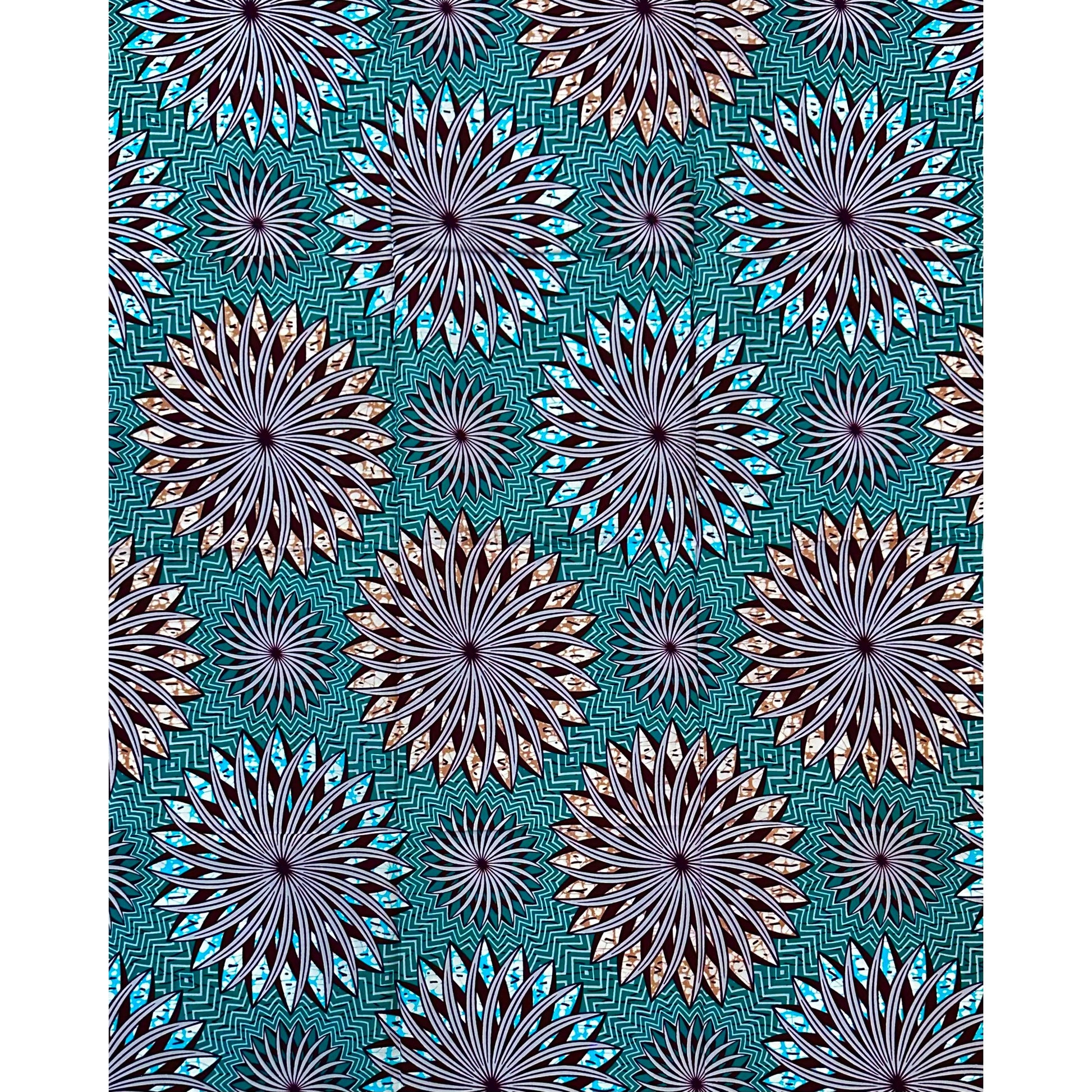 African Print Fabric/ Ankara - Teal, Brown, Gray ‘Power Burst' Design, 1 YARD
