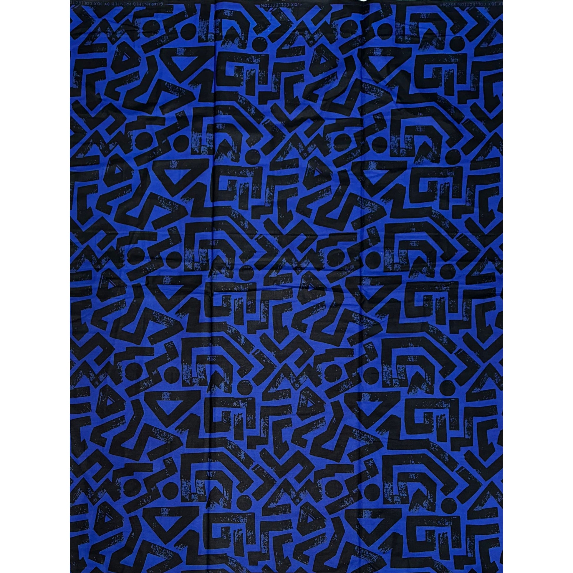 African Print Fabric/ Ankara - Blue, Black 'Ase Lines’, YARD or WHOLESALE