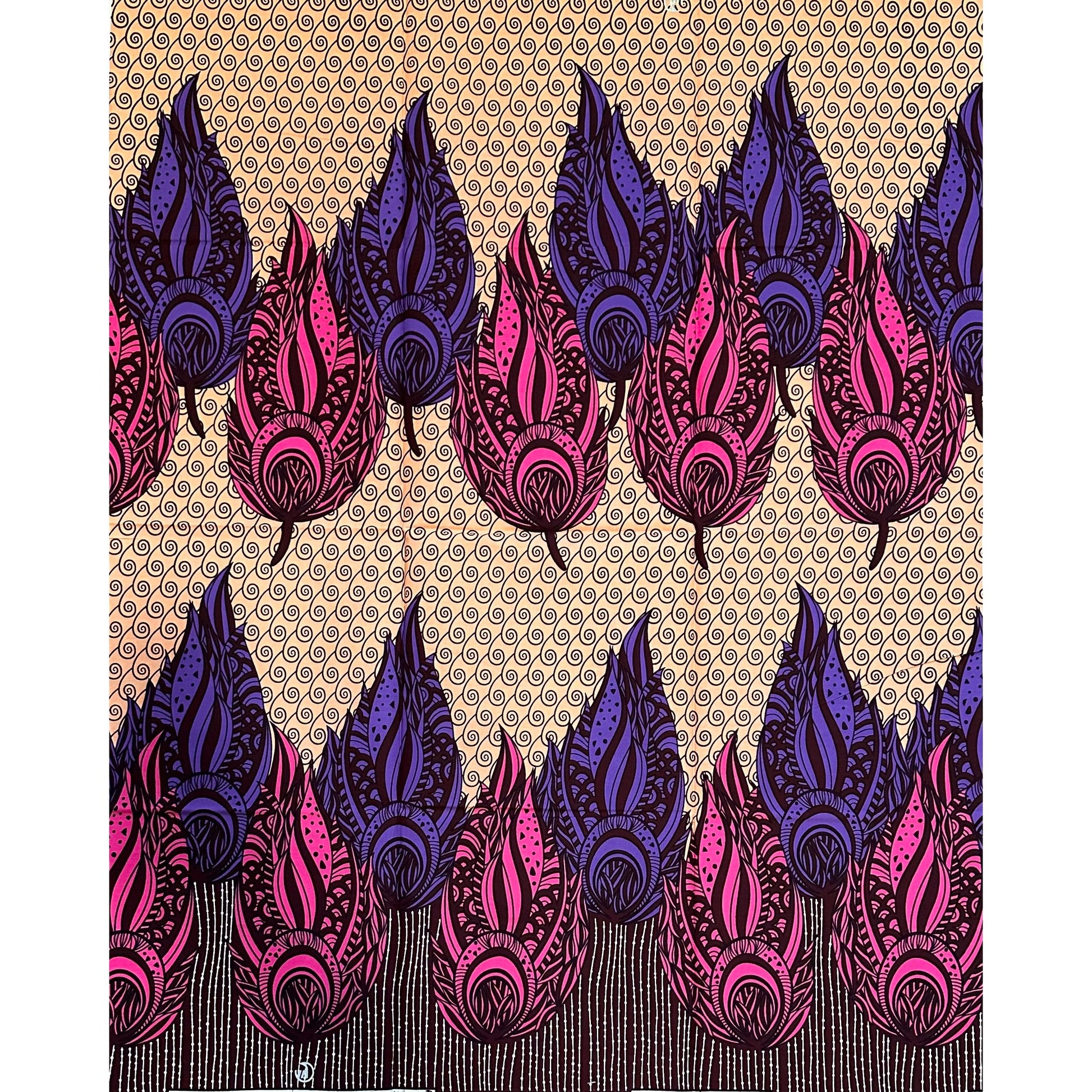 African Print Fabric/ Ankara - Purple, Pink, Brown, Beige “Royal Plume Procession', 1 YARD