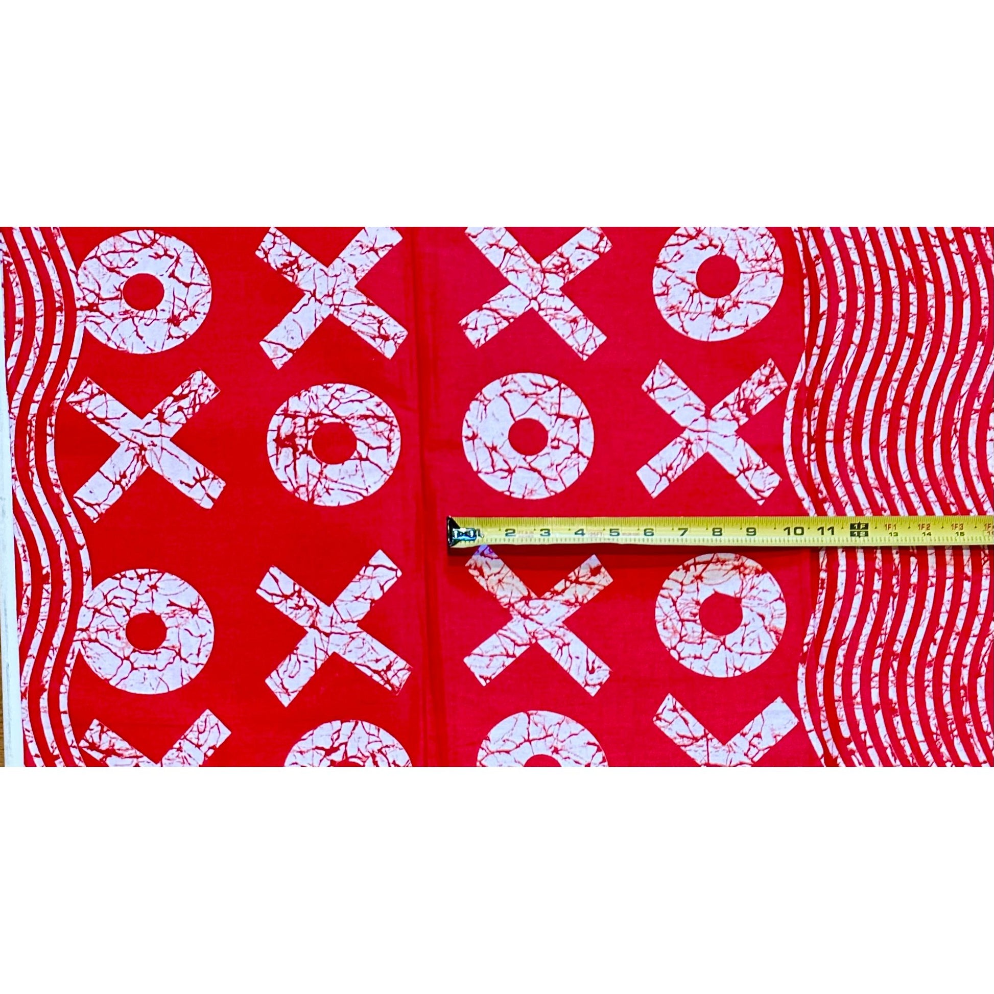 African Print Fabric/ Ankara - Red, White 'XOXO', Per Yard or Wholesale