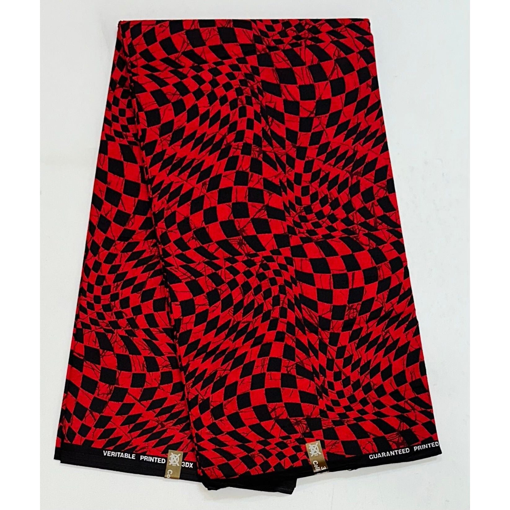 African Print Fabric/ Ankara - Red, Black 'Kikapu Kiss” YARD or WHOLESALE