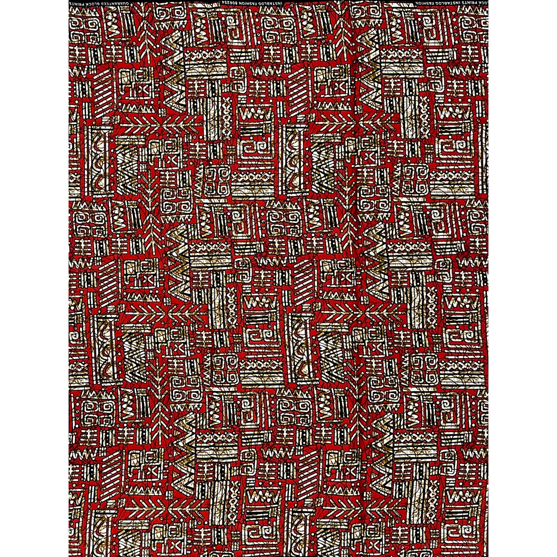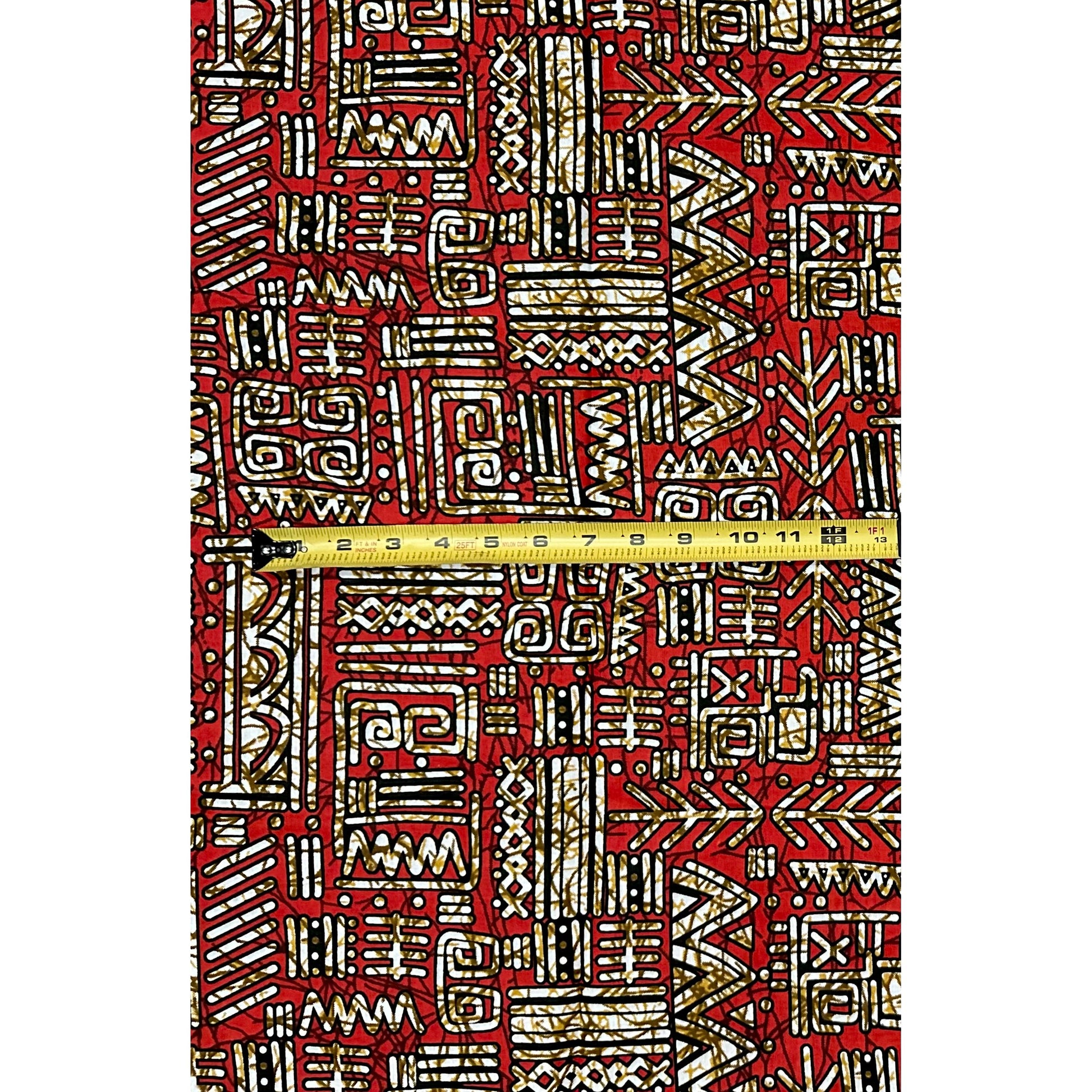 African Print Fabric/ Ankara - Red, Brown 'Oba Glyph' Design, YARD or WHOLESALE