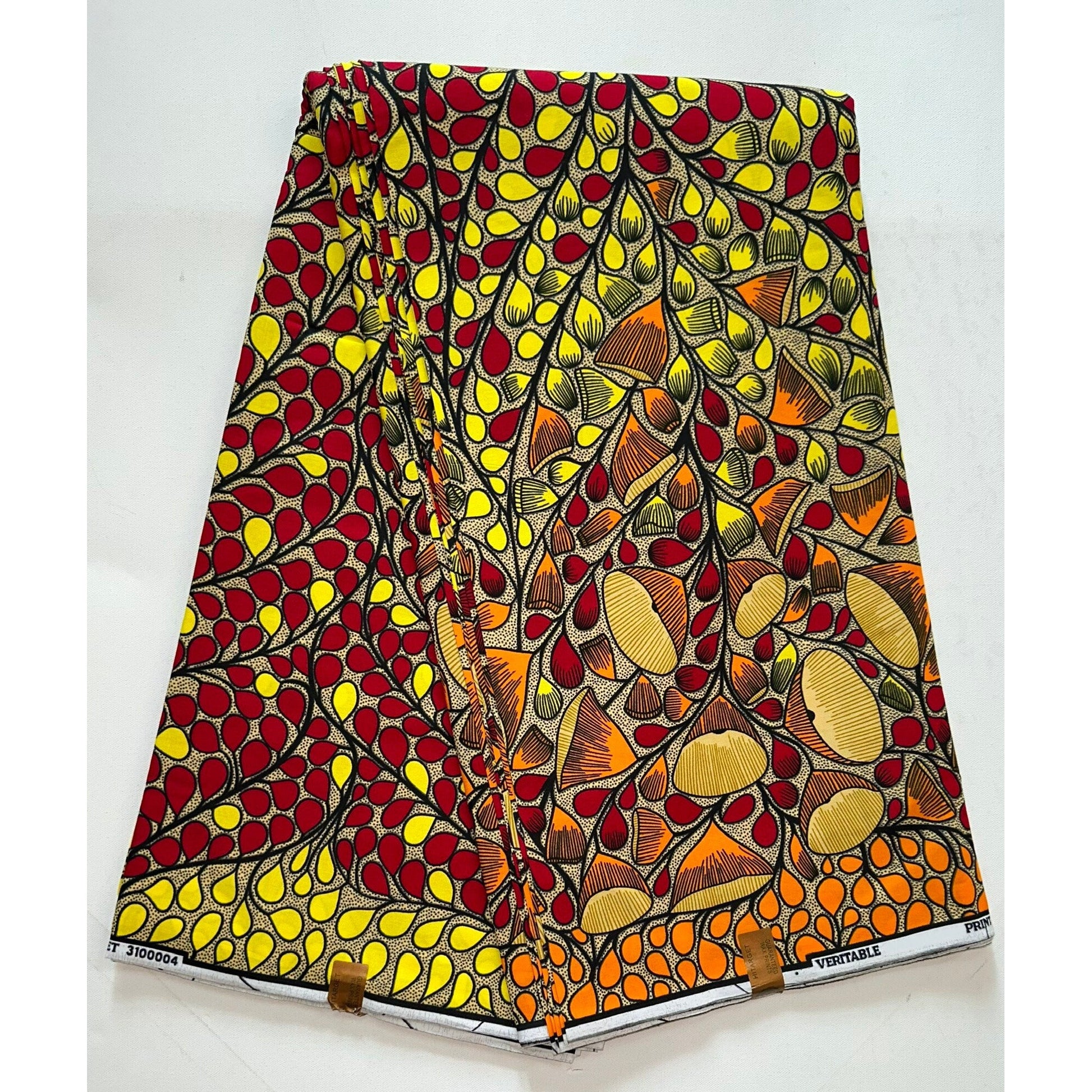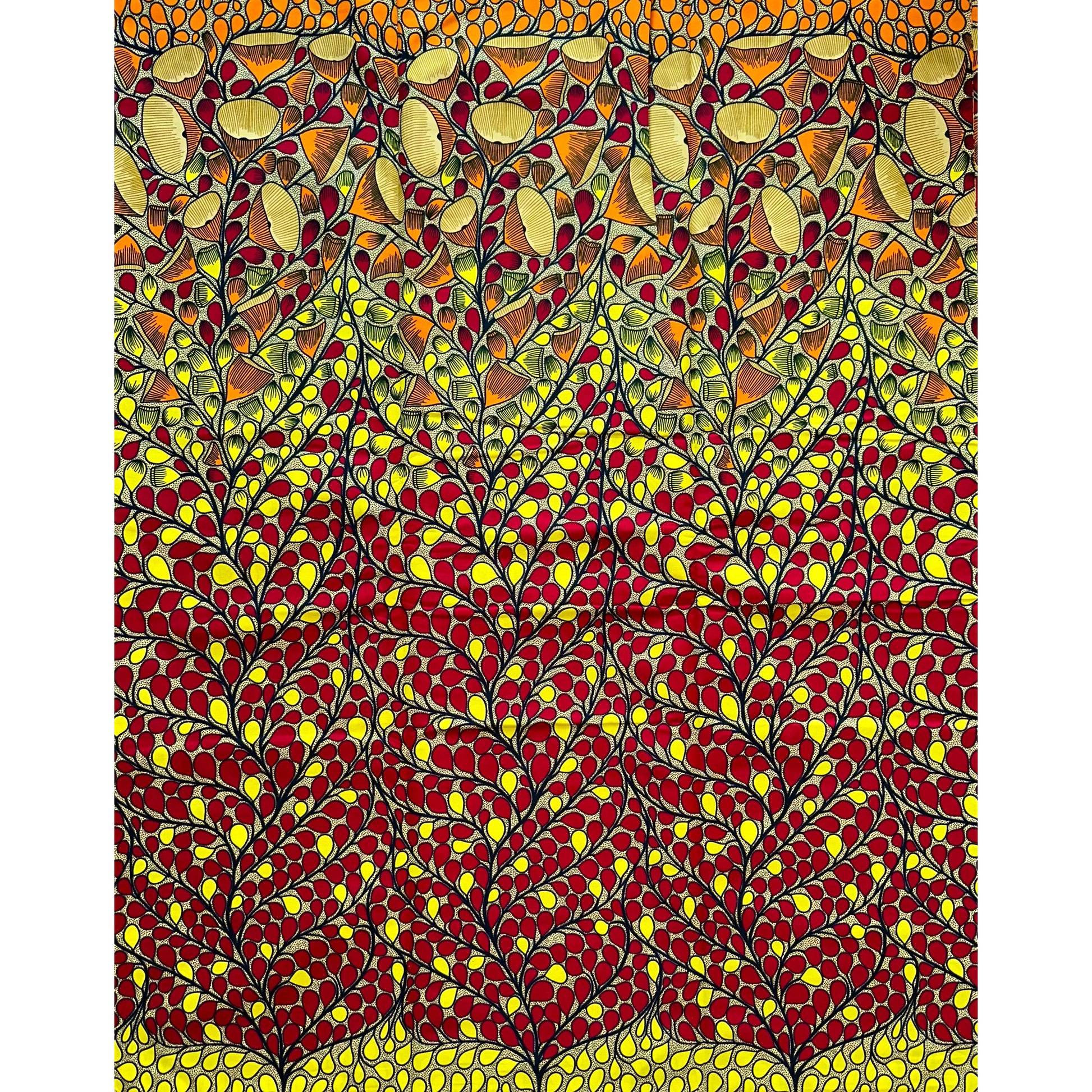 African Print Fabric/ Ankara - Red, Brown, Yellow, Orange 'Dream Works' Design, YARD or WHOLESALE