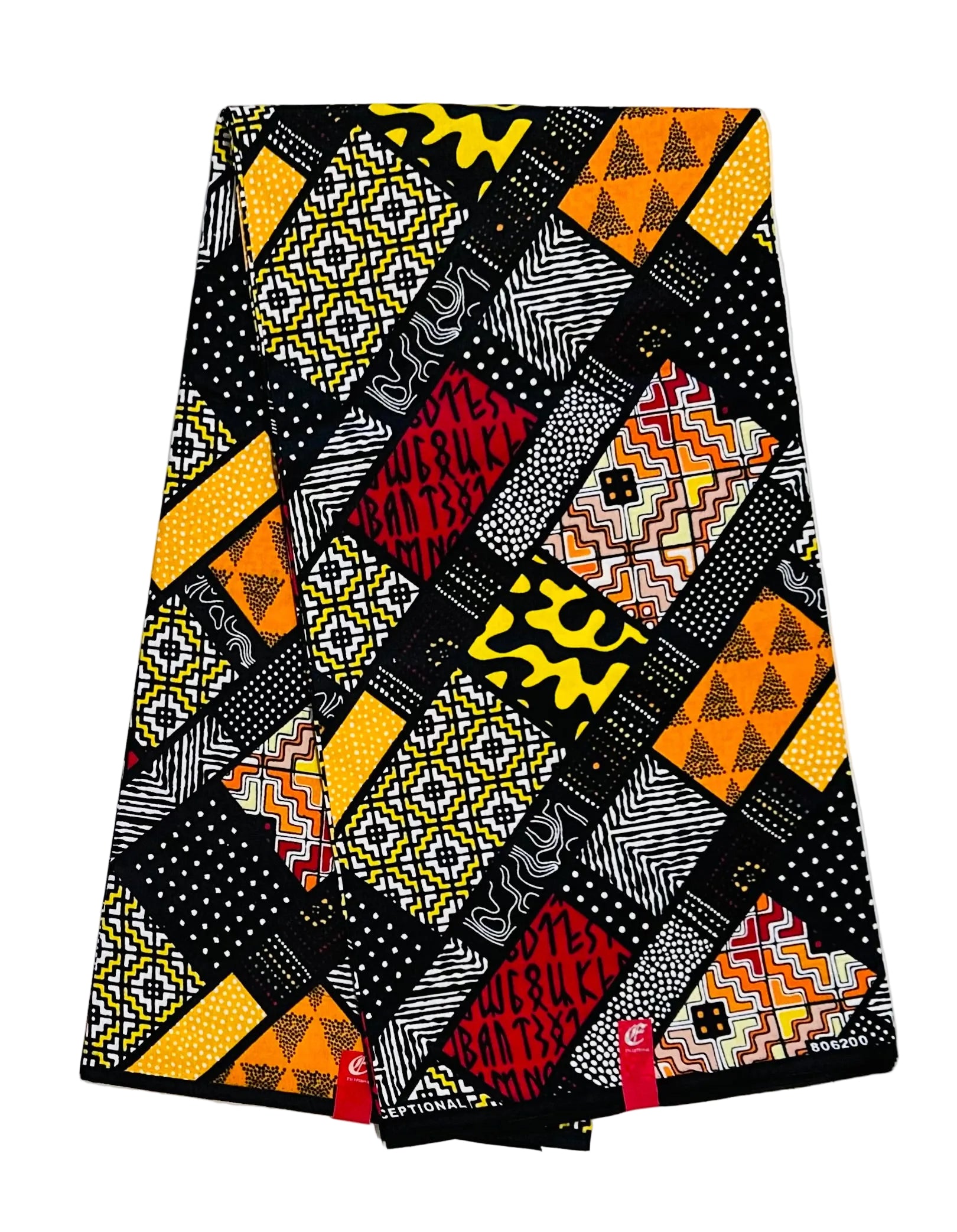 African Print Fabric/ Ankara - Red, Black, Yellow, Orange 'Omenala Code' Design, YARD or WHOLESALE