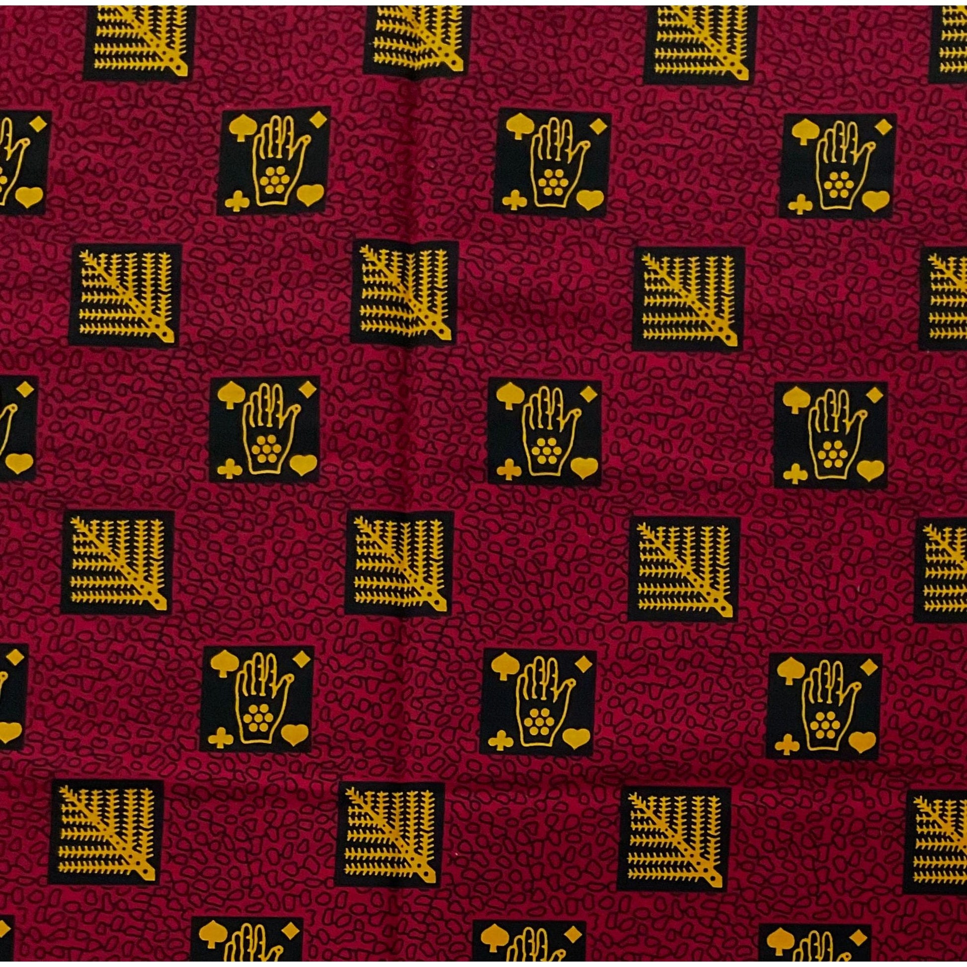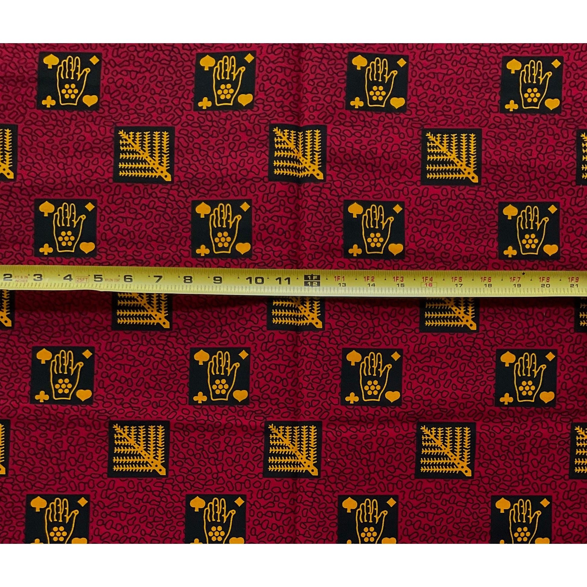 African Print Fabric/Ankara - Red, Marigold, Black 'African Tarot', YARD or WHOLESALE