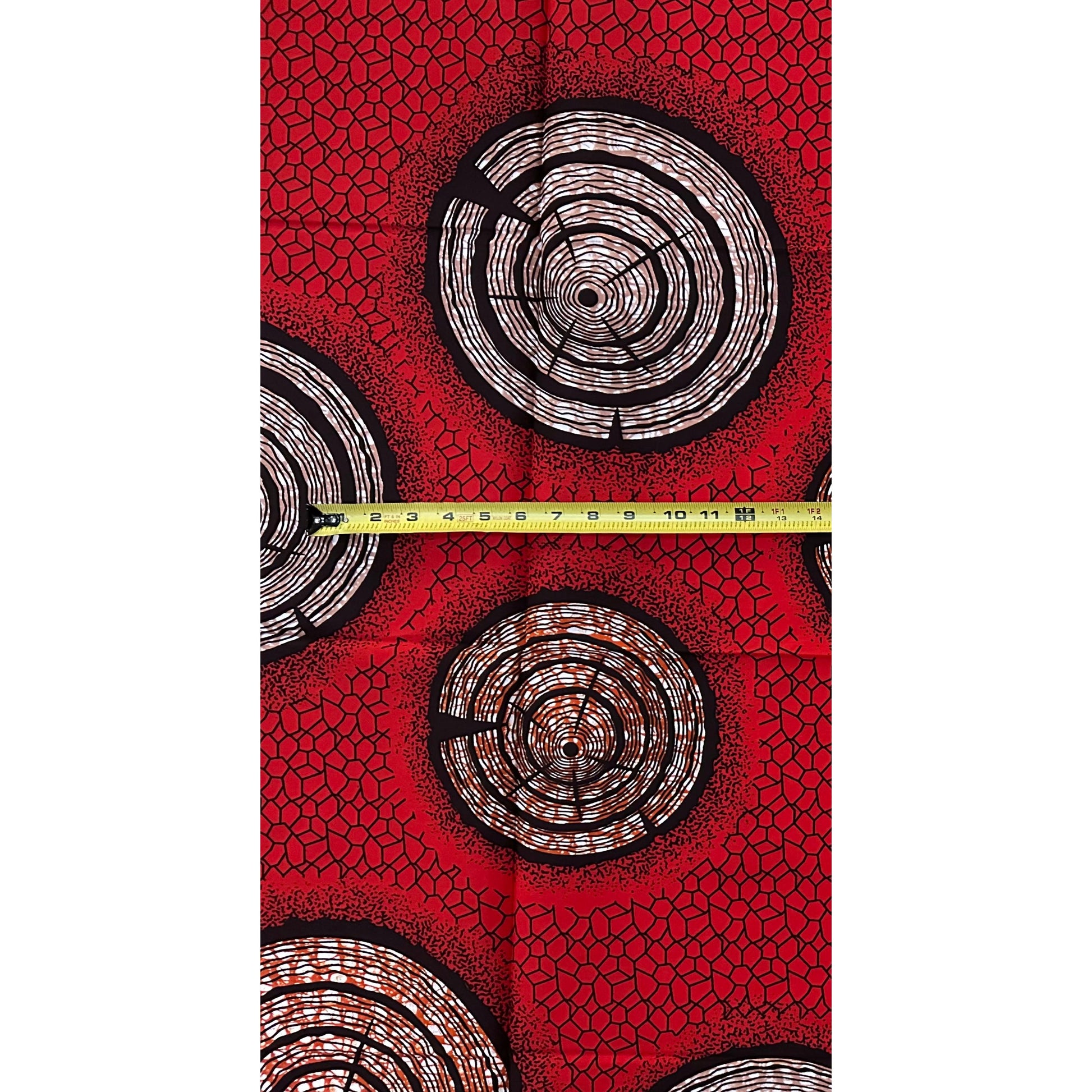 African Print Fabric/ Ankara - Red, Orange, Brown 'Drums of Red Earth' Design, 1 Yard