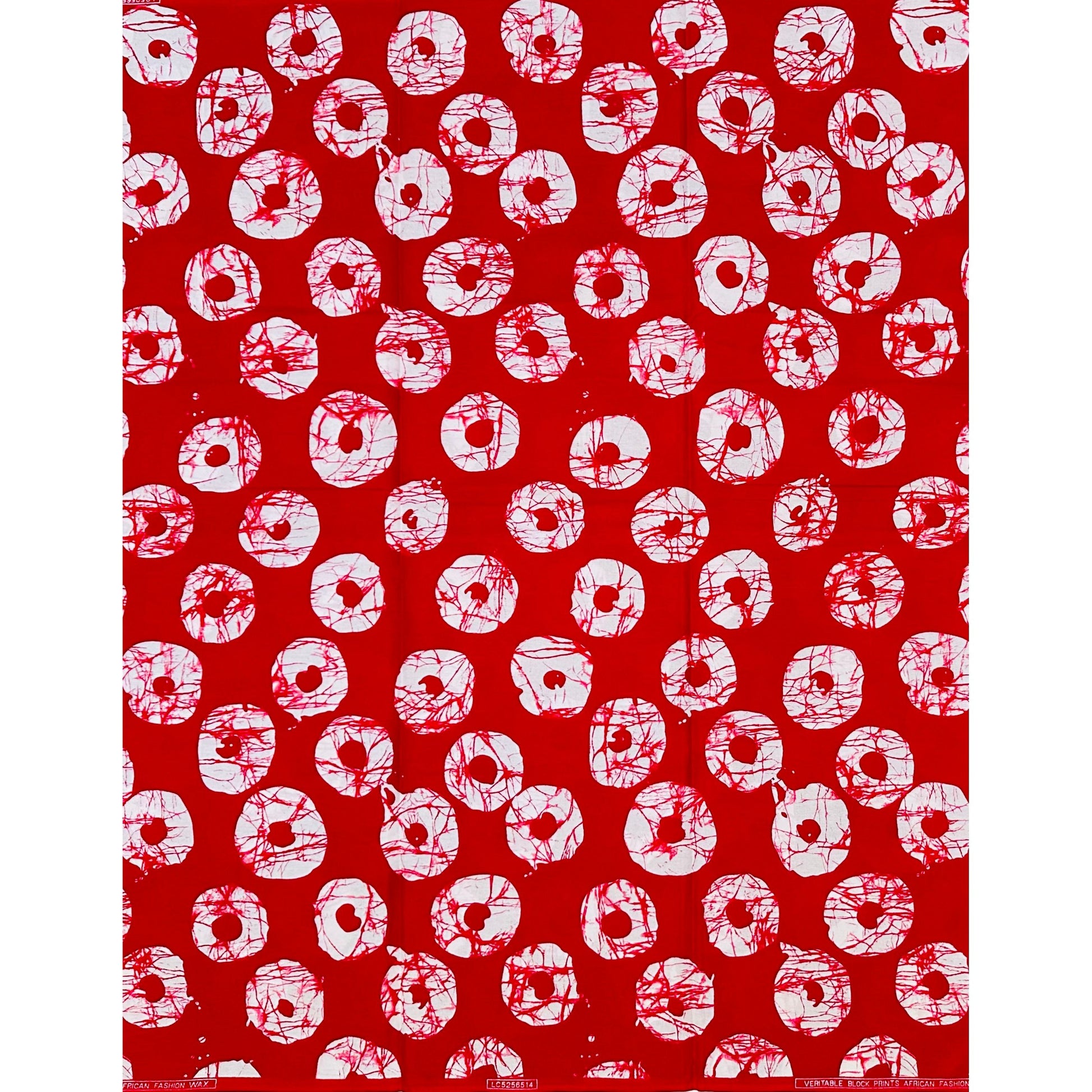African Print Fabric/ Ankara - Red, White 'Oro of Breeze' Design, YARD or WHOLESALE