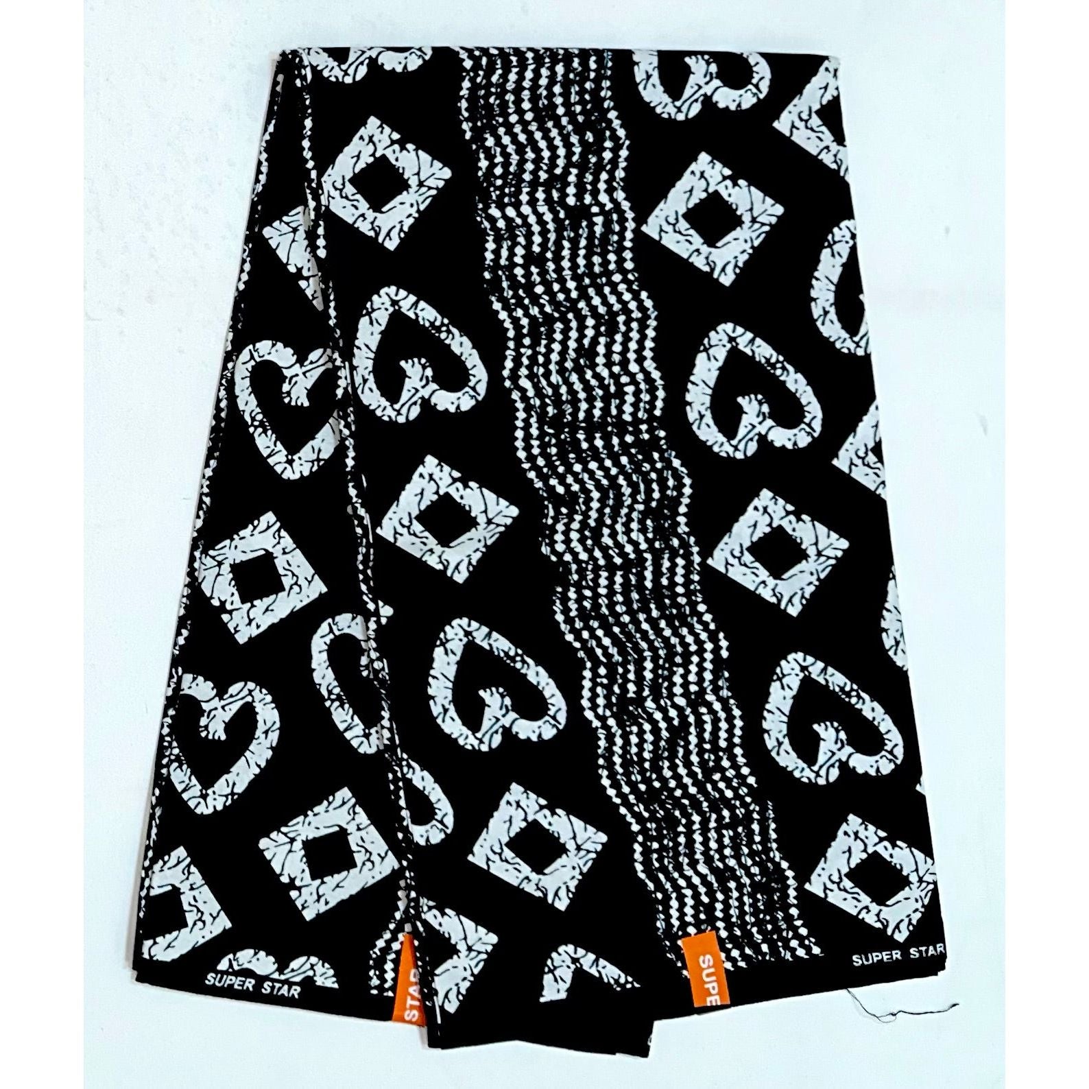 African Print Fabric/ Ankara - Black, White 'Sew In Love' Design, YARD or WHOLESALE