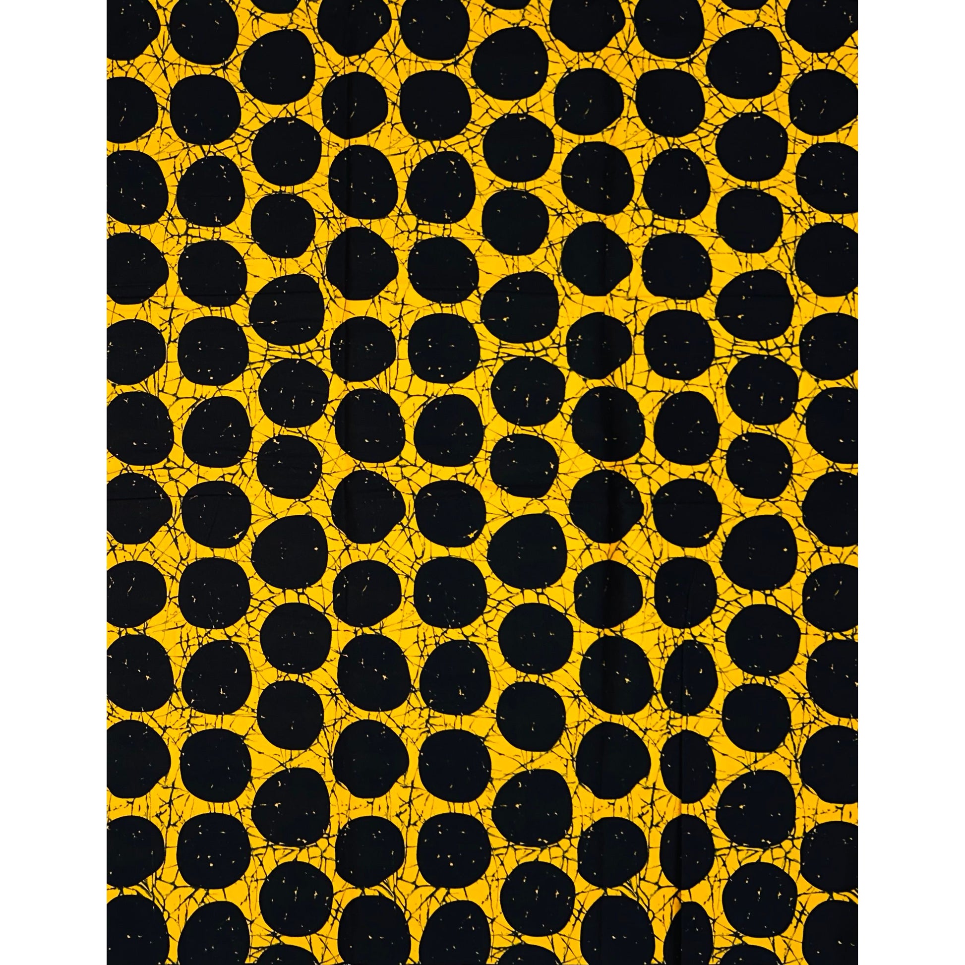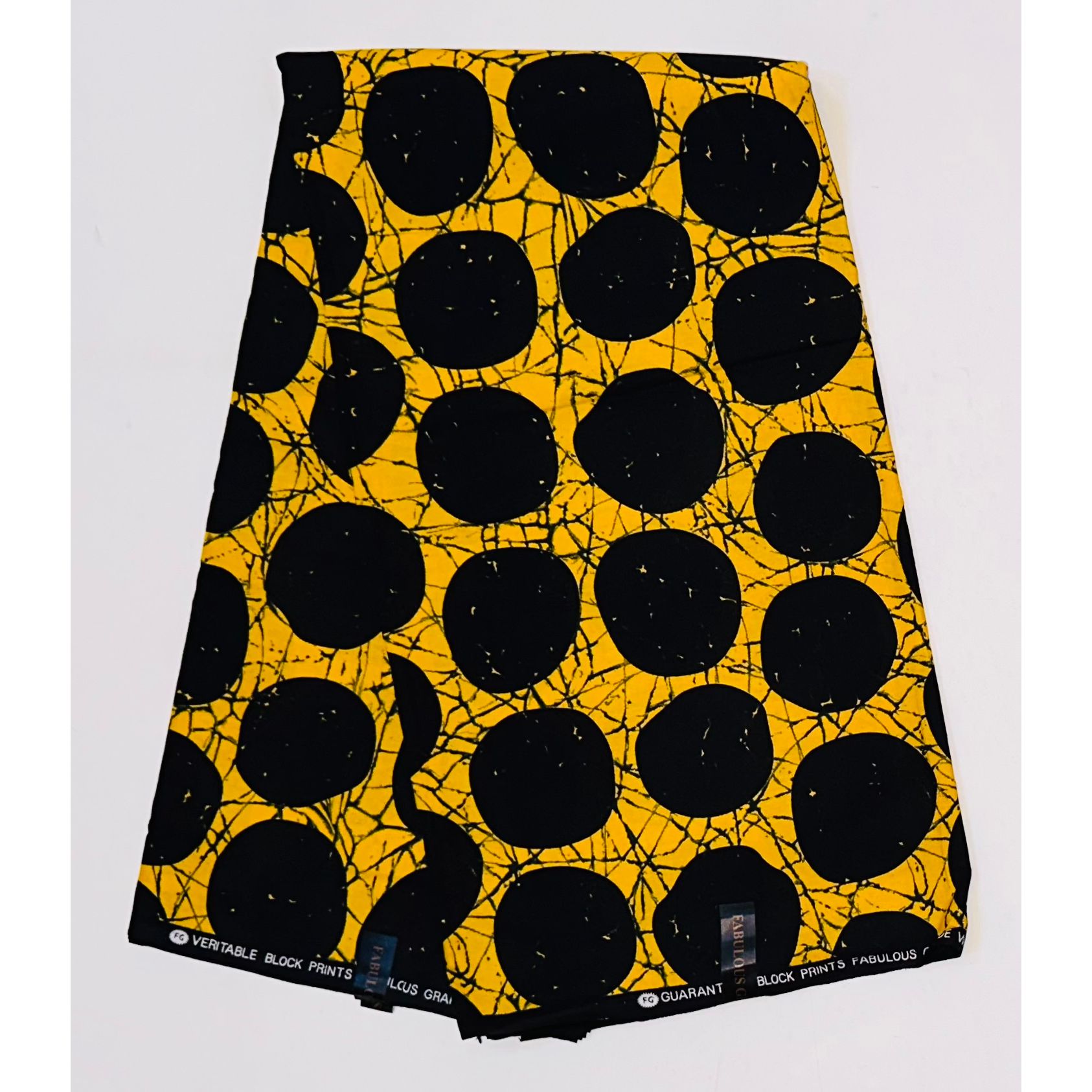 African Print Fabric/ Ankara - Yellow, Black 'Oro of the Sun' Design, YARD or WHOLESALE