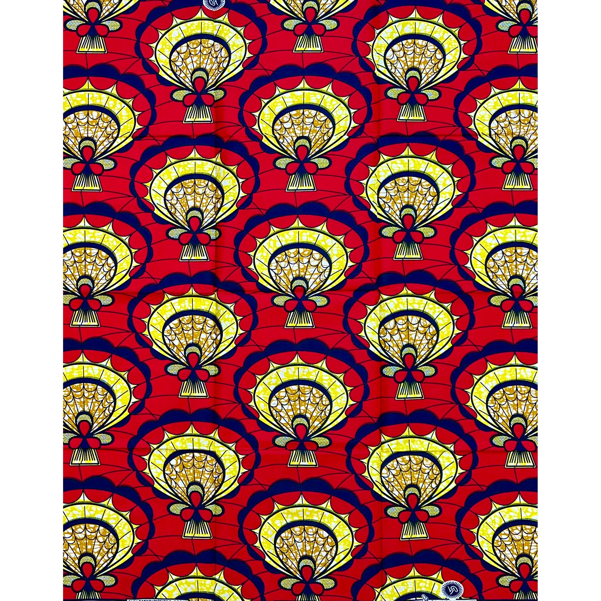 African Print Fabric/Ankara - Red, Yellow, Navy "Asantehene Court" , 1 Yard