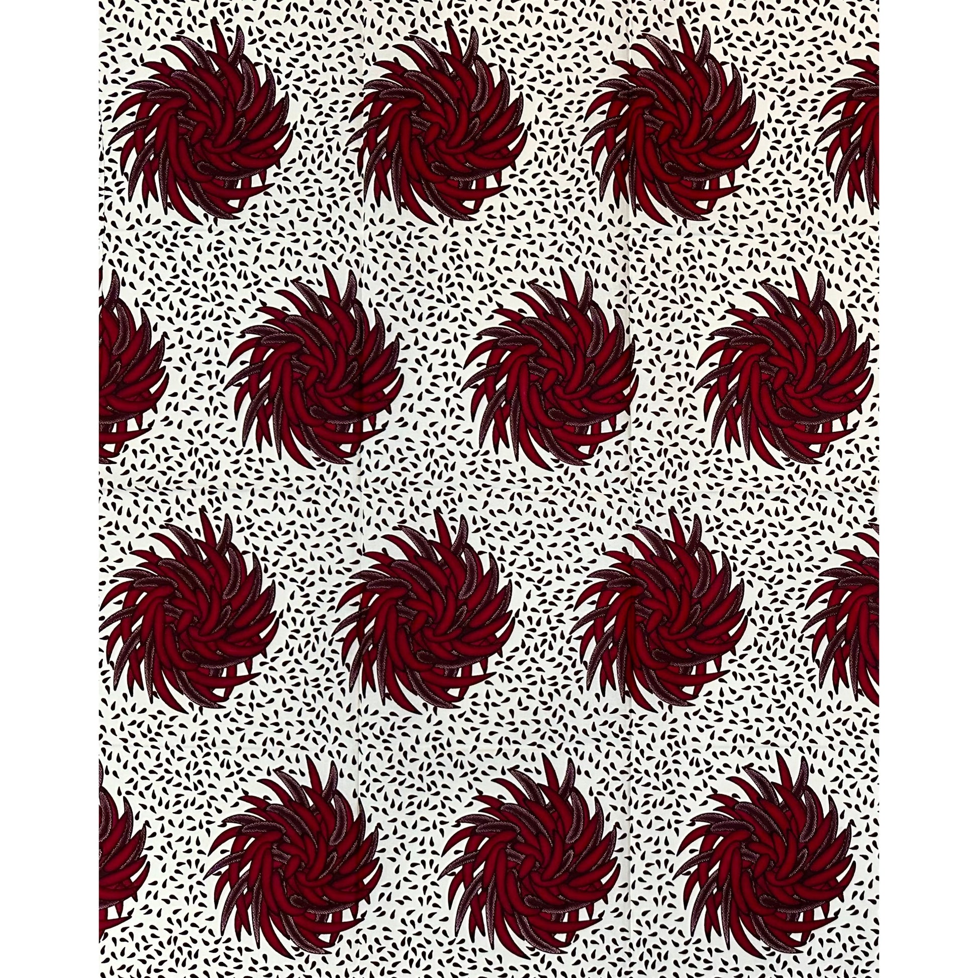 African Print Fabric/ Ankara - Red, Brown, Off-White ‘Bahari Ember' Design, YARD