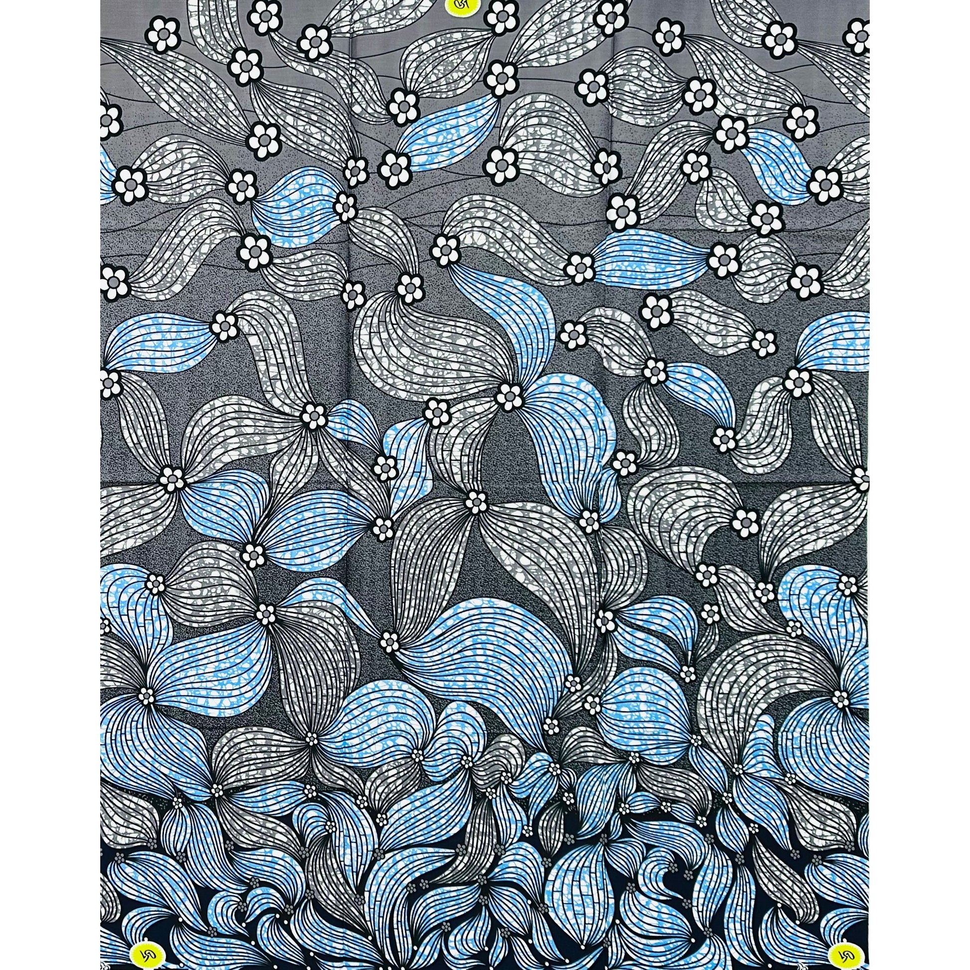 African Print Fabric/Ankara - Gray, Blue "River Season" Design, 1 Yard