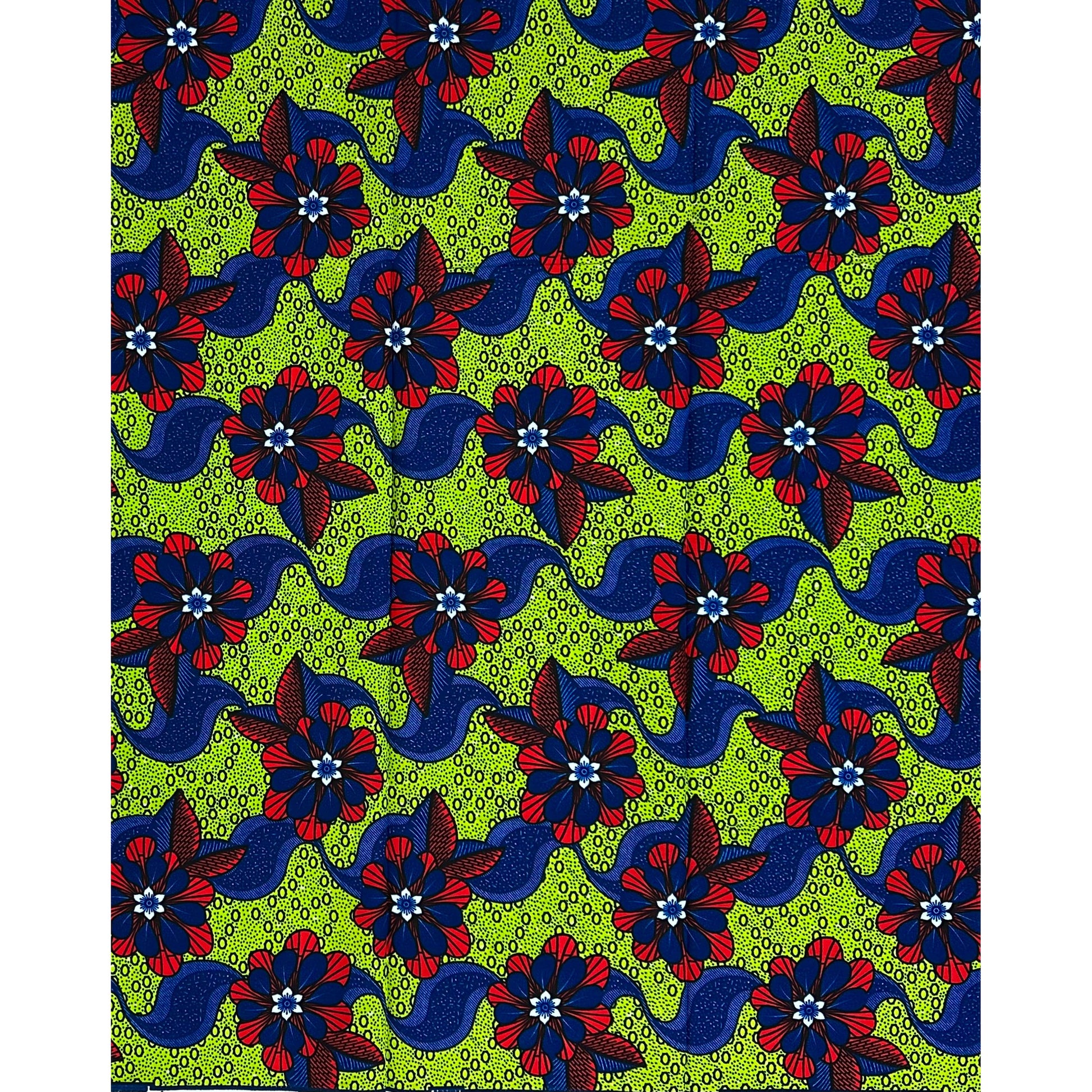 African Print Fabric/ Ankara - Green, Red, Blue ‘Flowers Dey Dance' Design, YARD