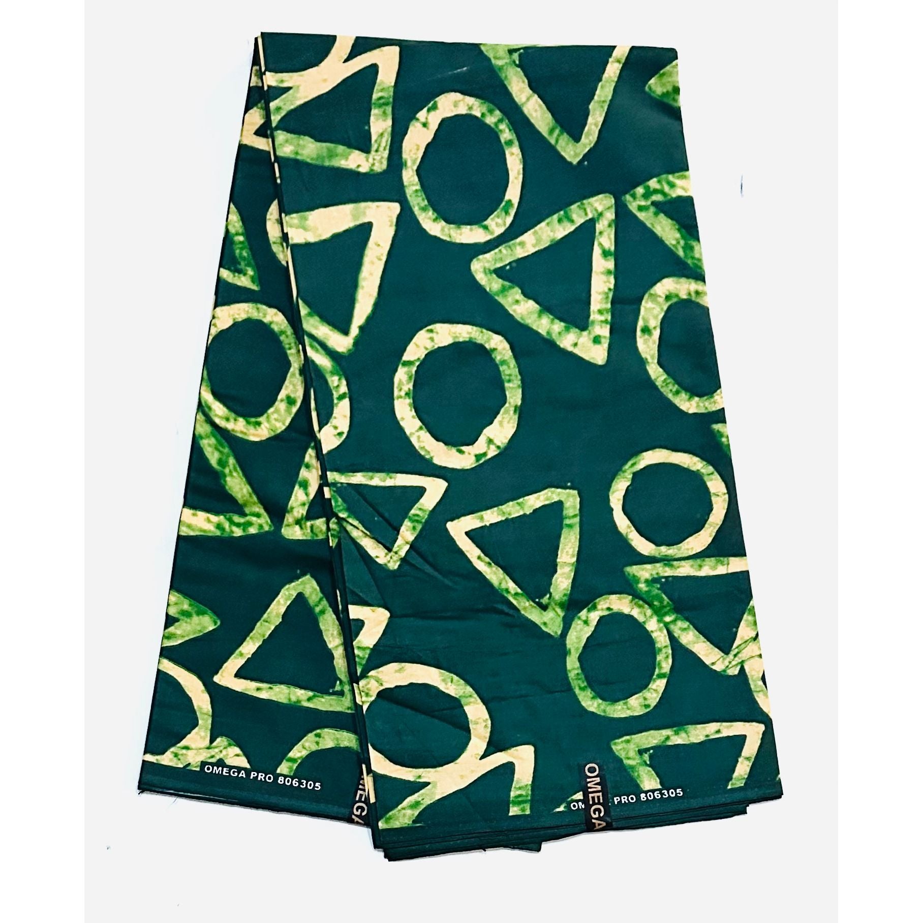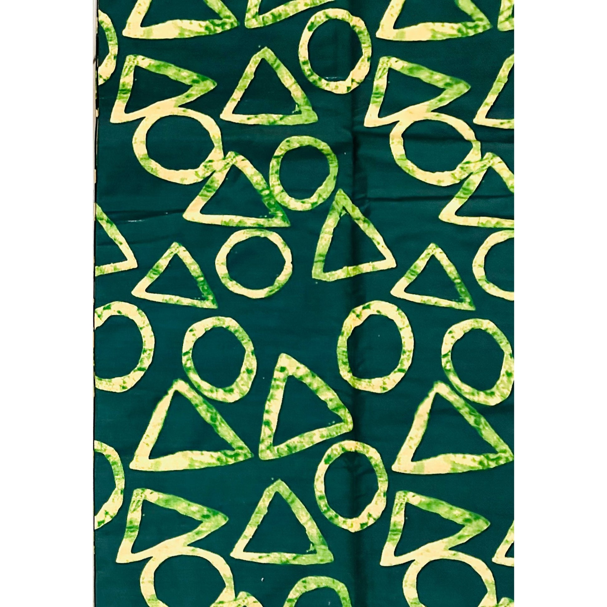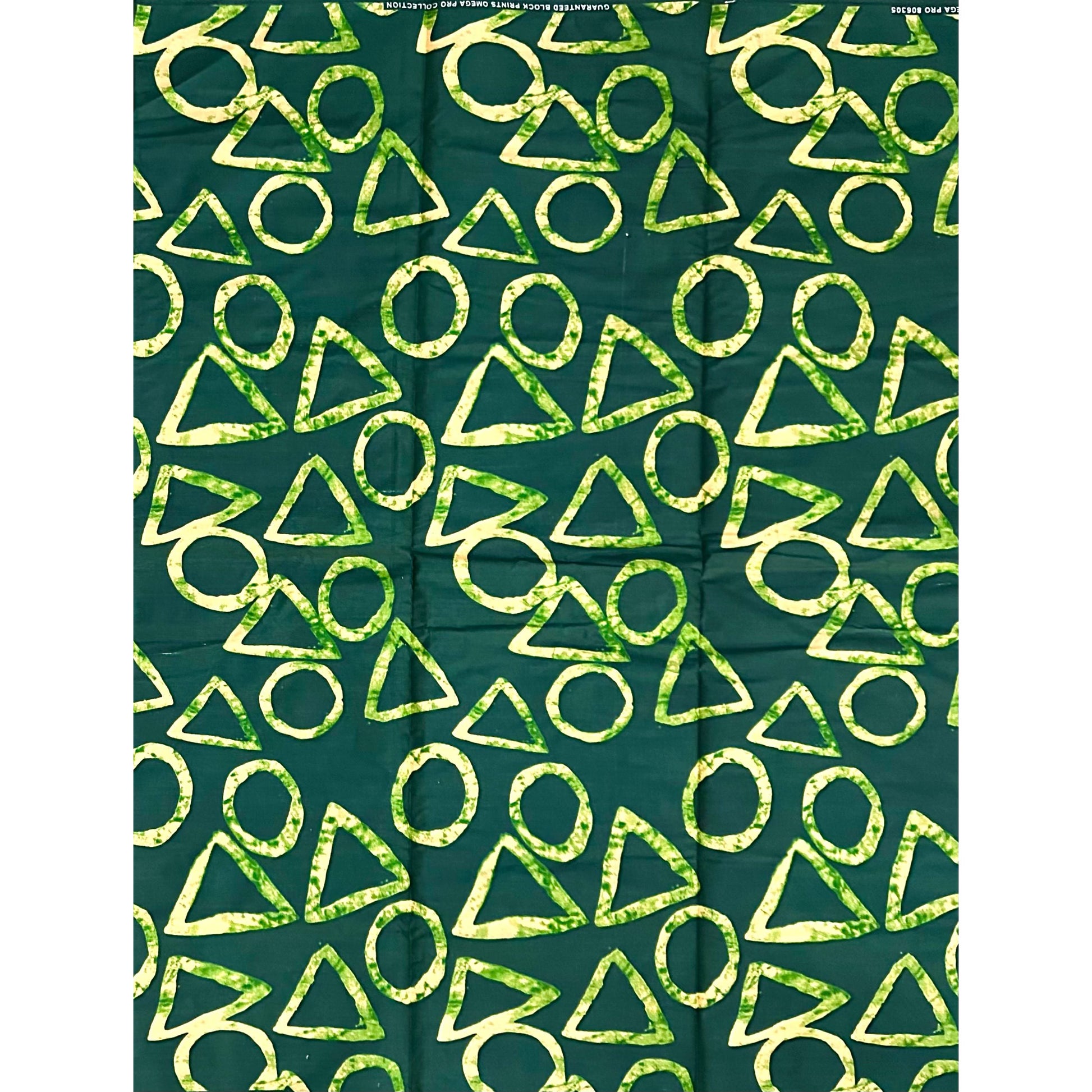African Print Fabric/ Ankara - Green, Beige 'Ifa Geometry', YARD or WHOLESALE
