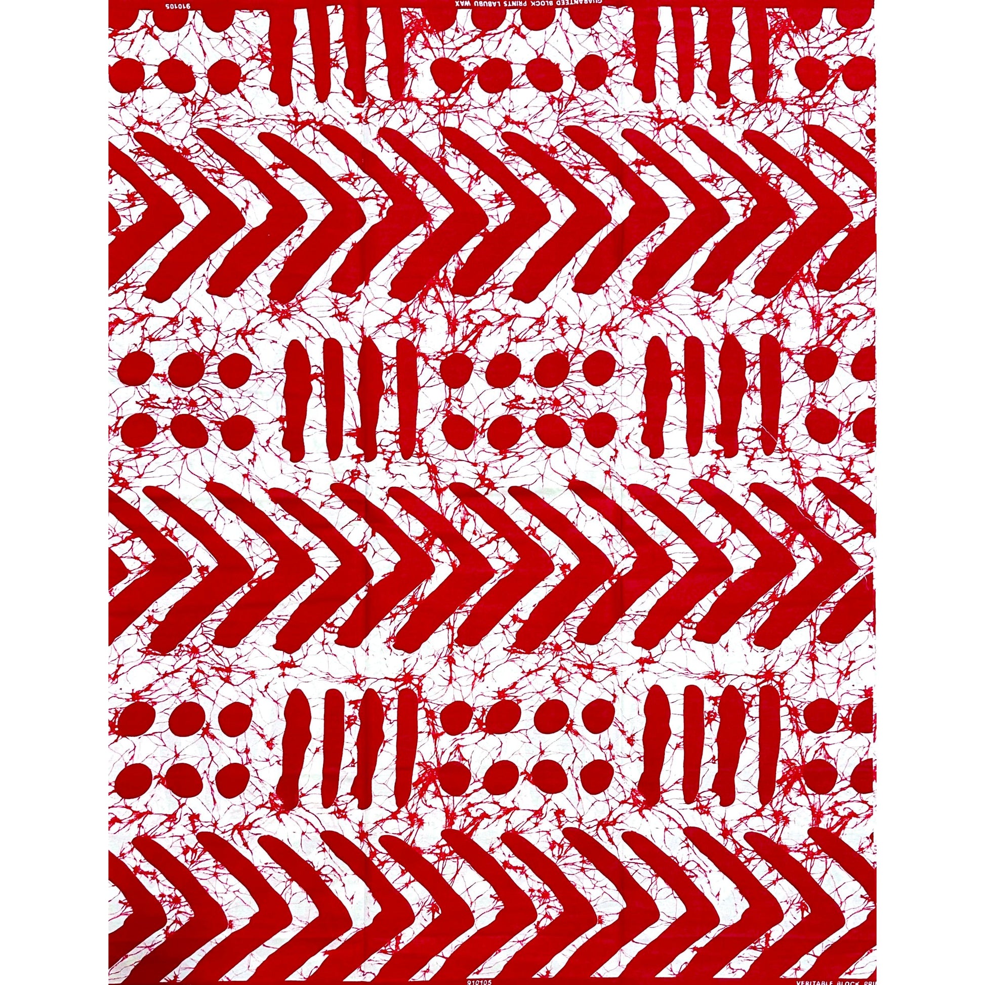 African Print Fabric/ Ankara - White, Red 'Zulu Mark', YARD or WHOLESALE