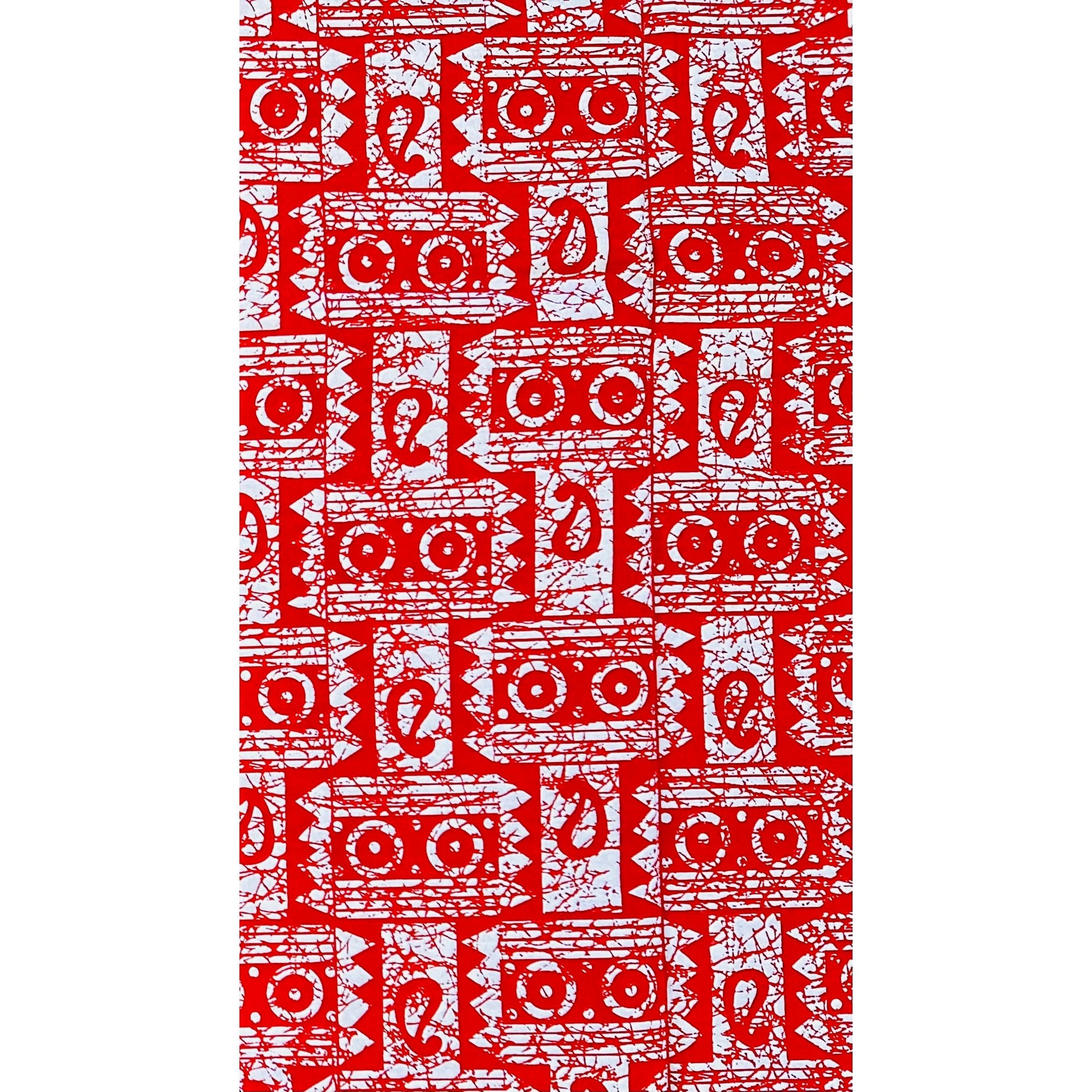 African Print Fabric/ Ankara - White, Red 'Echo of Life', YARD or WHOLESALE