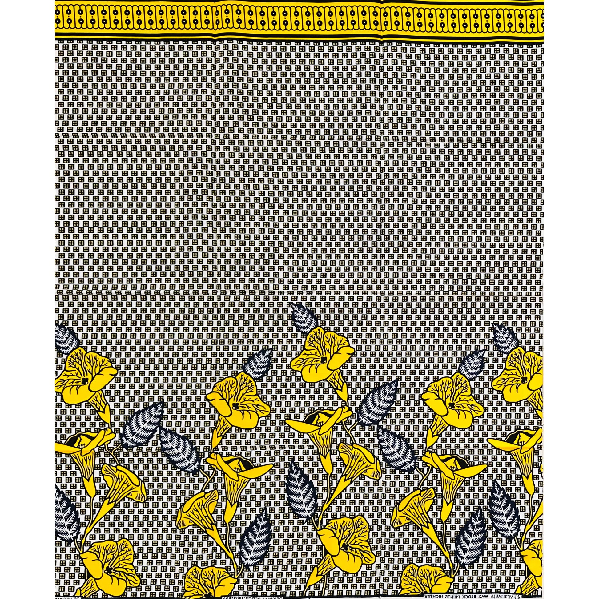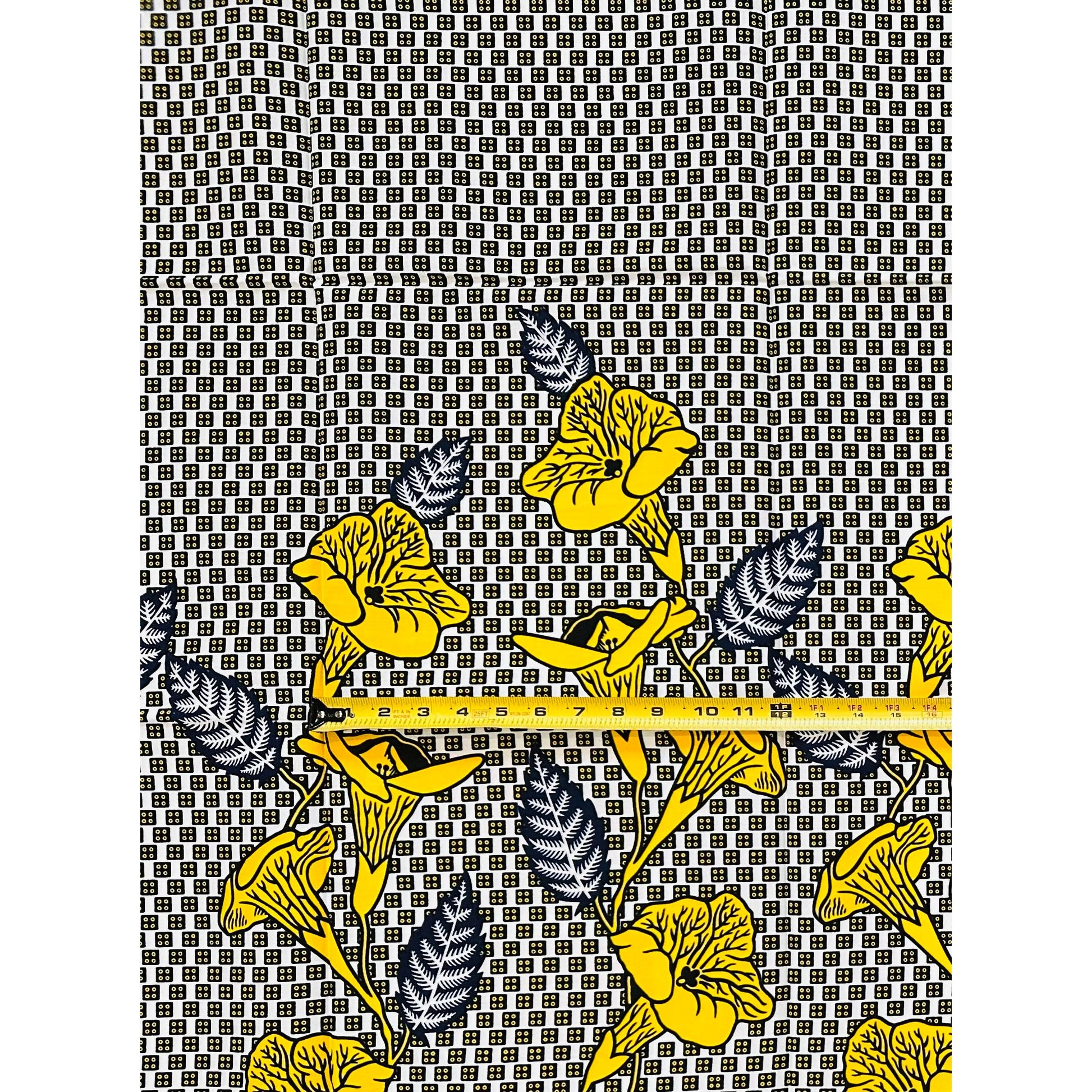 African Print Fabric/Ankara - Yellow, White, Navy "Sọ́lá Drift" Design, Per Yard