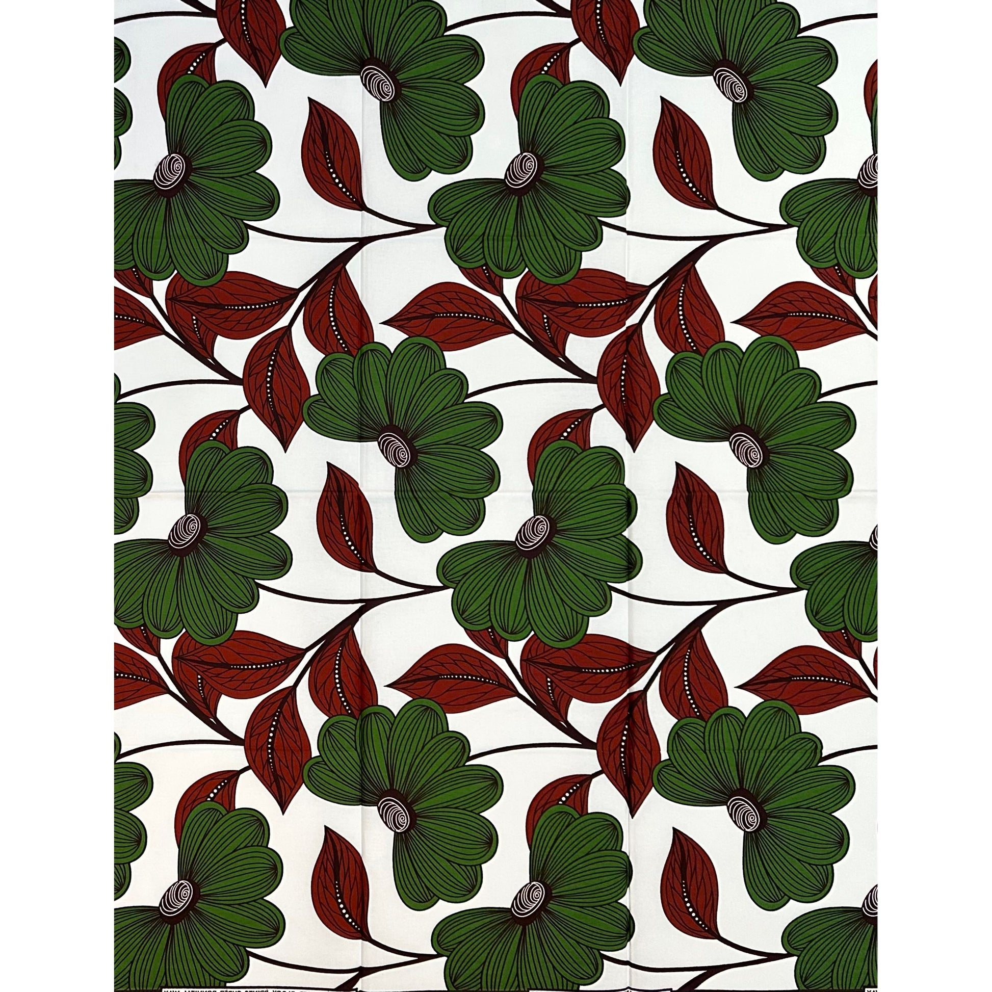 African Print Fabric/Ankara - Green, Brown "Ewa Verde" Design