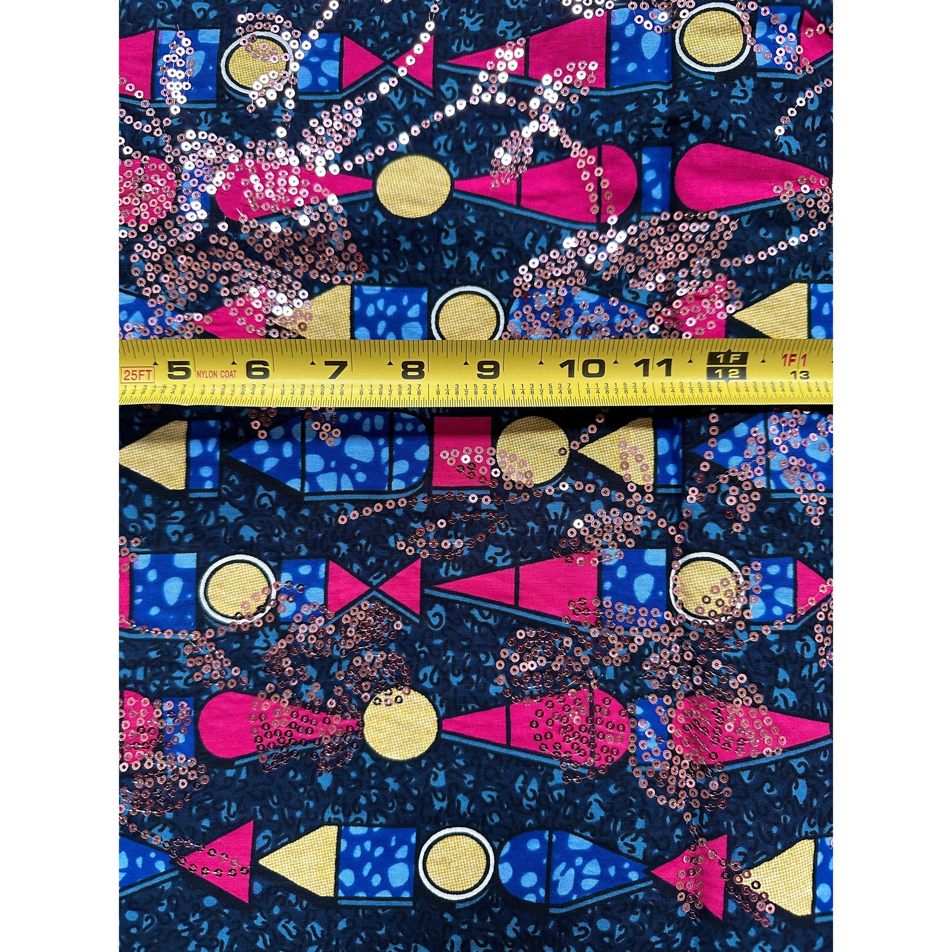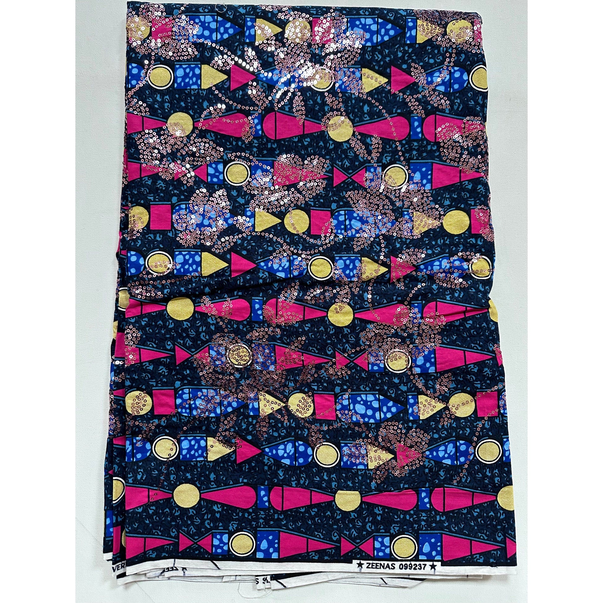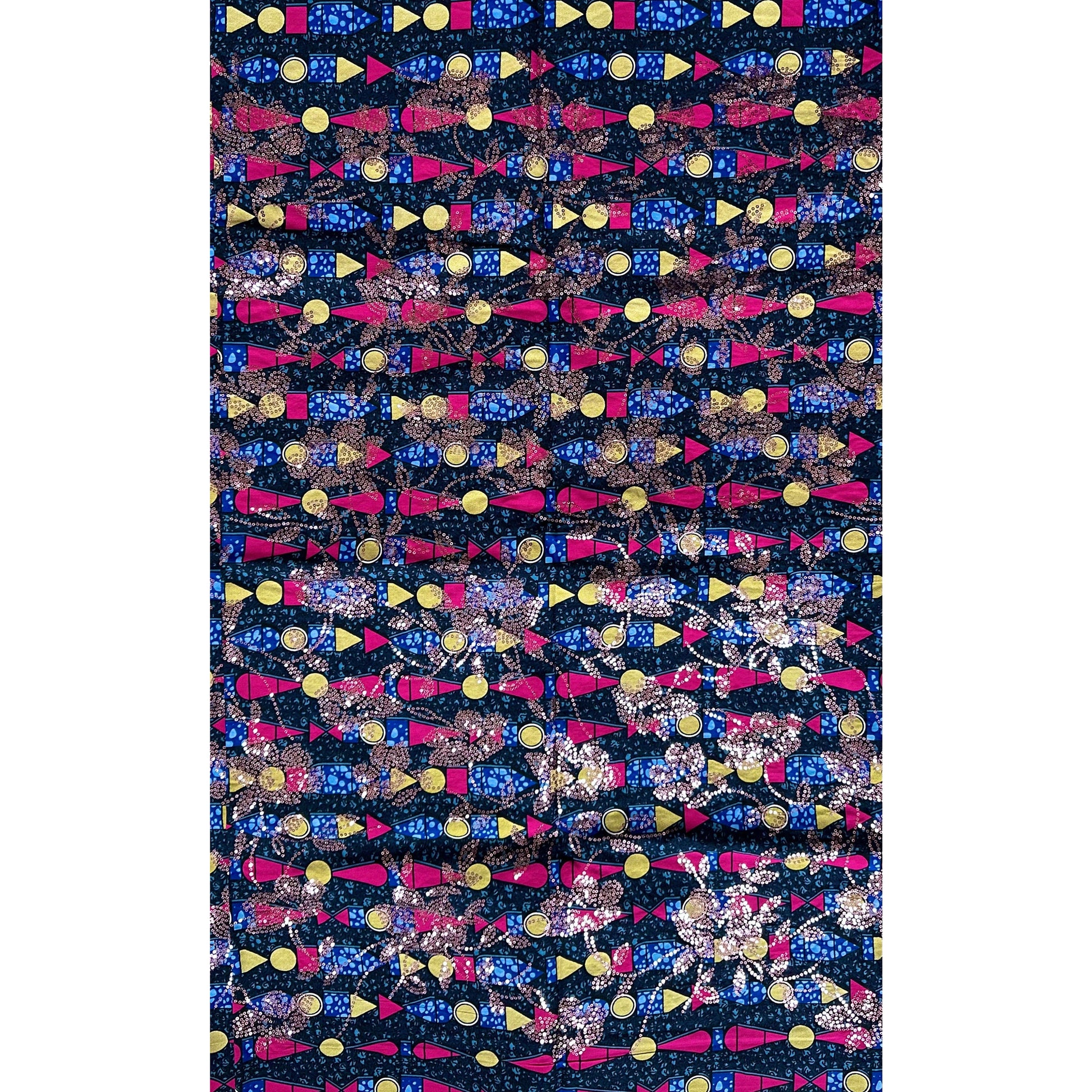 African Print Fabric/Sequined - Ankara: Blue, Pink, Beige ‘Queen Khentkaus', Yard or Wholesale