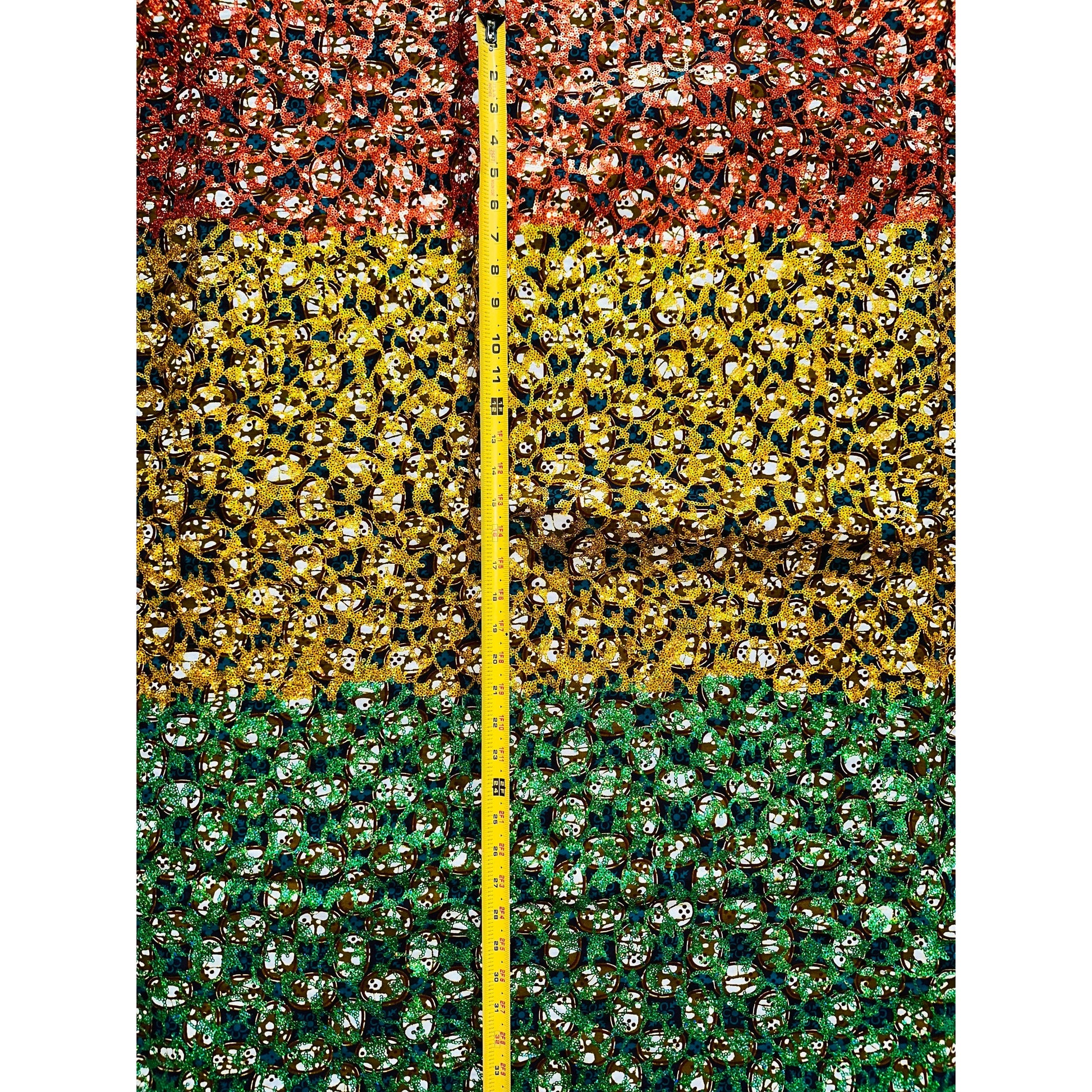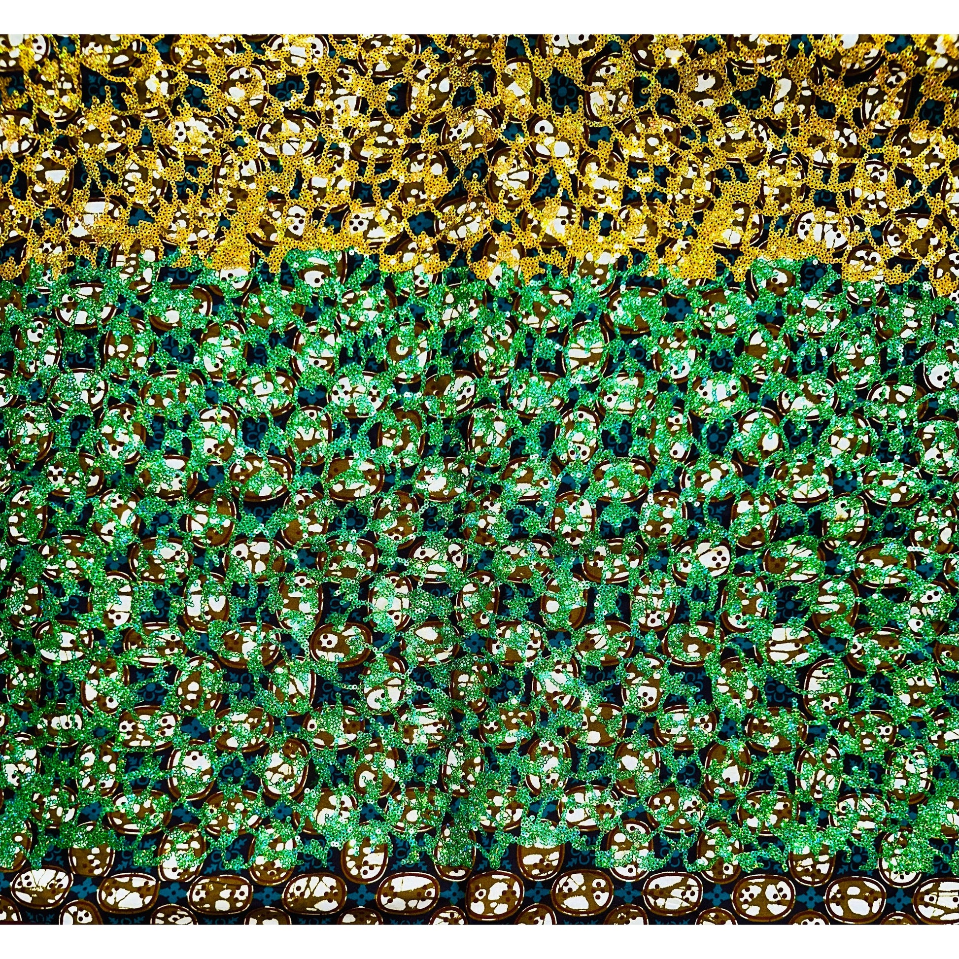 African Print Fabric/Sequined - Ankara: Green, Brown, Gold ‘Queen Saffa', Yard or Wholesale