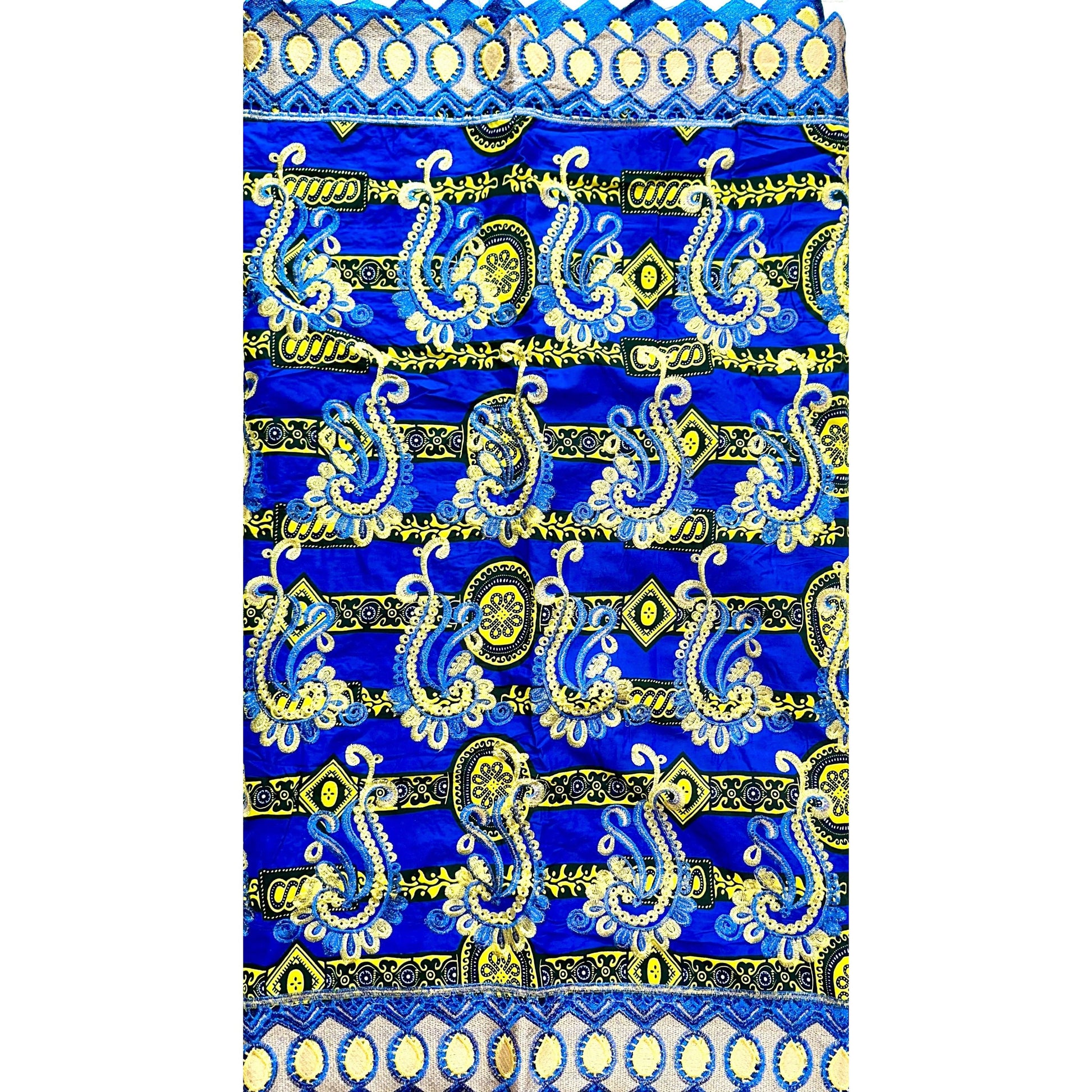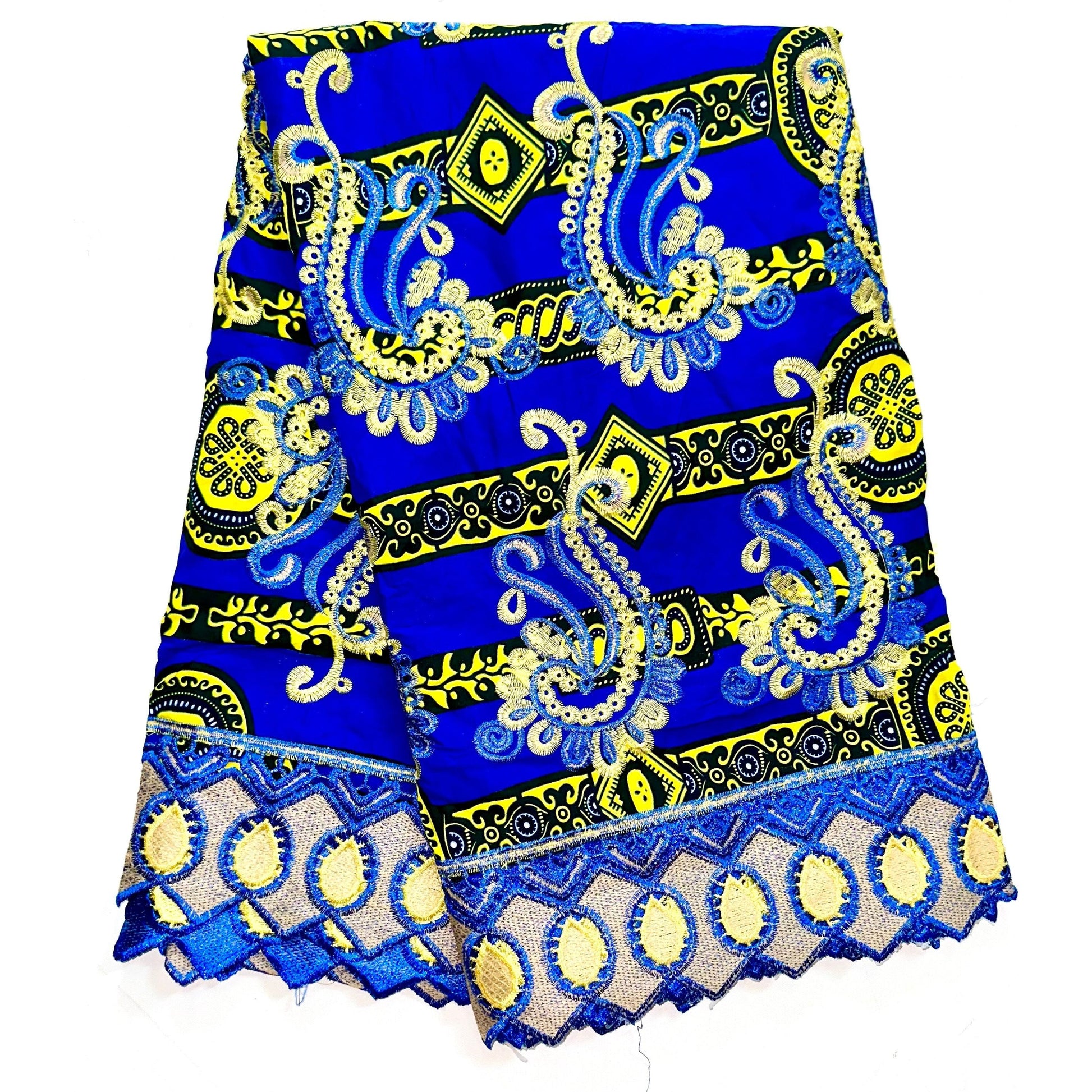 African Print Lace Fabric/ Ankara - Blue, Yellow, Black 'Singita', Yard or Wholesale