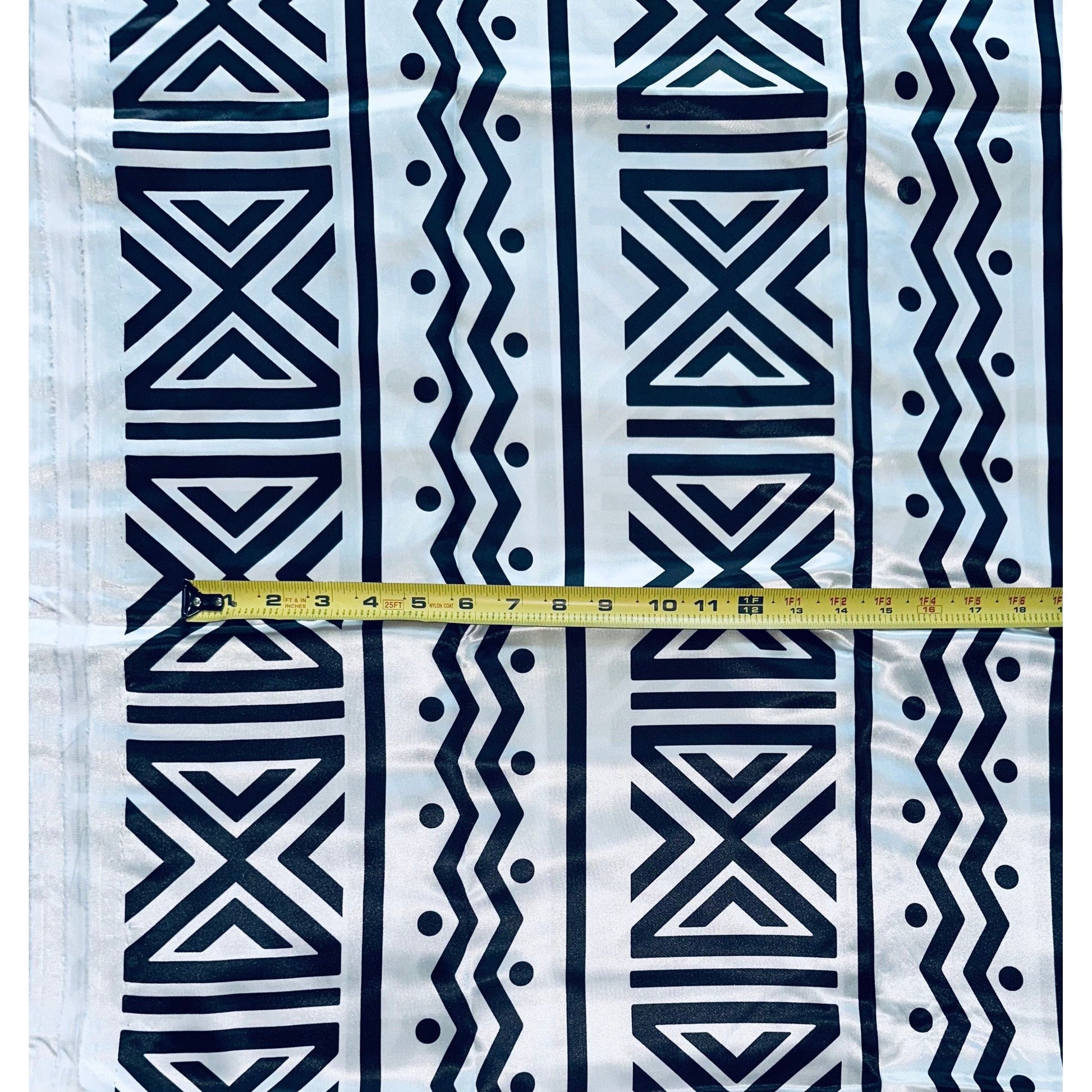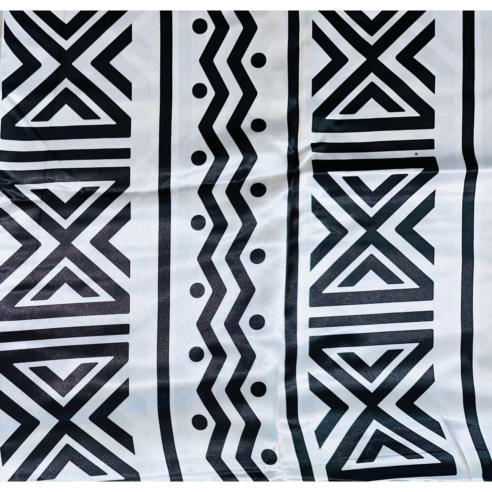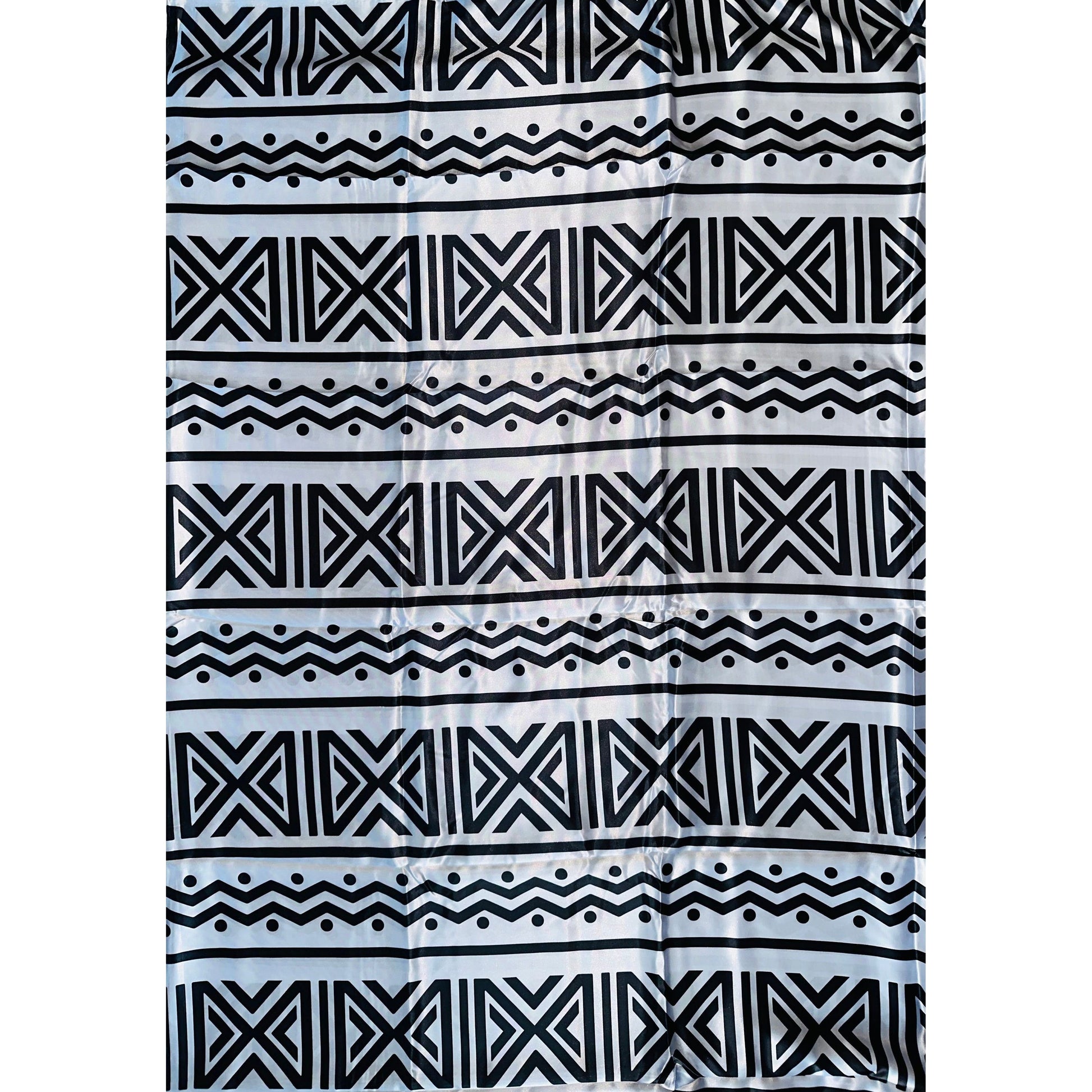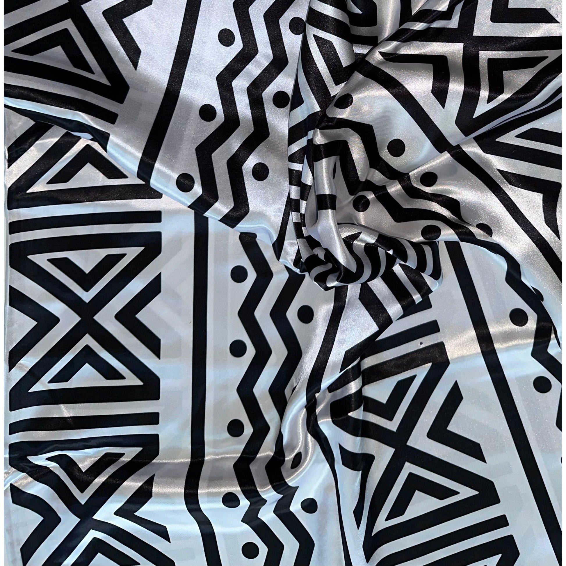 African Print, Satin Fabric- Black, White "Nima", Yard or Wholesale