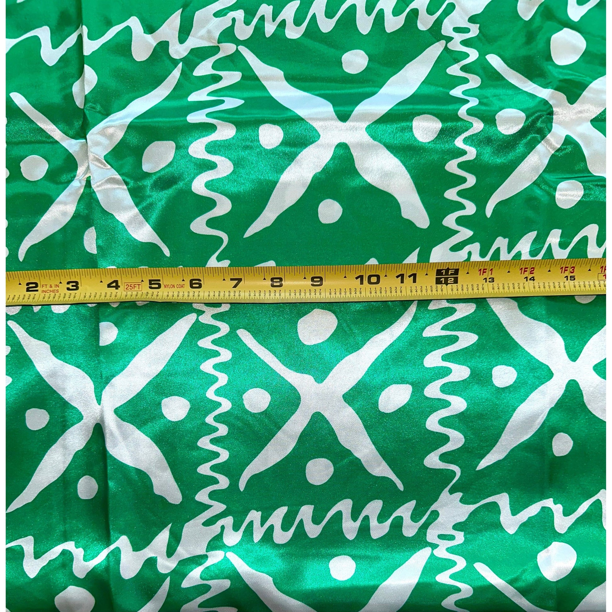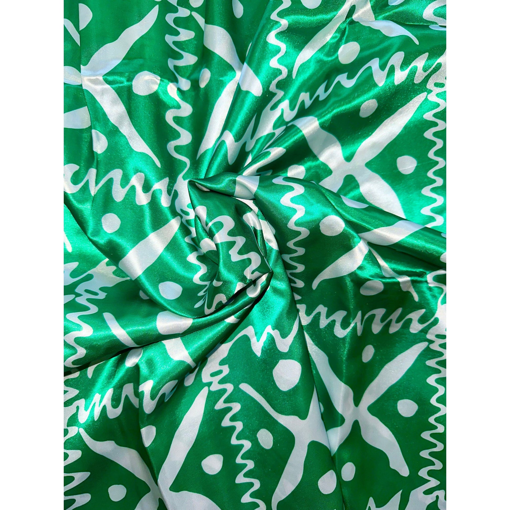 African Print, Satin Fabric- Green, White "Naija To The Max", Per Yard or Wholesale