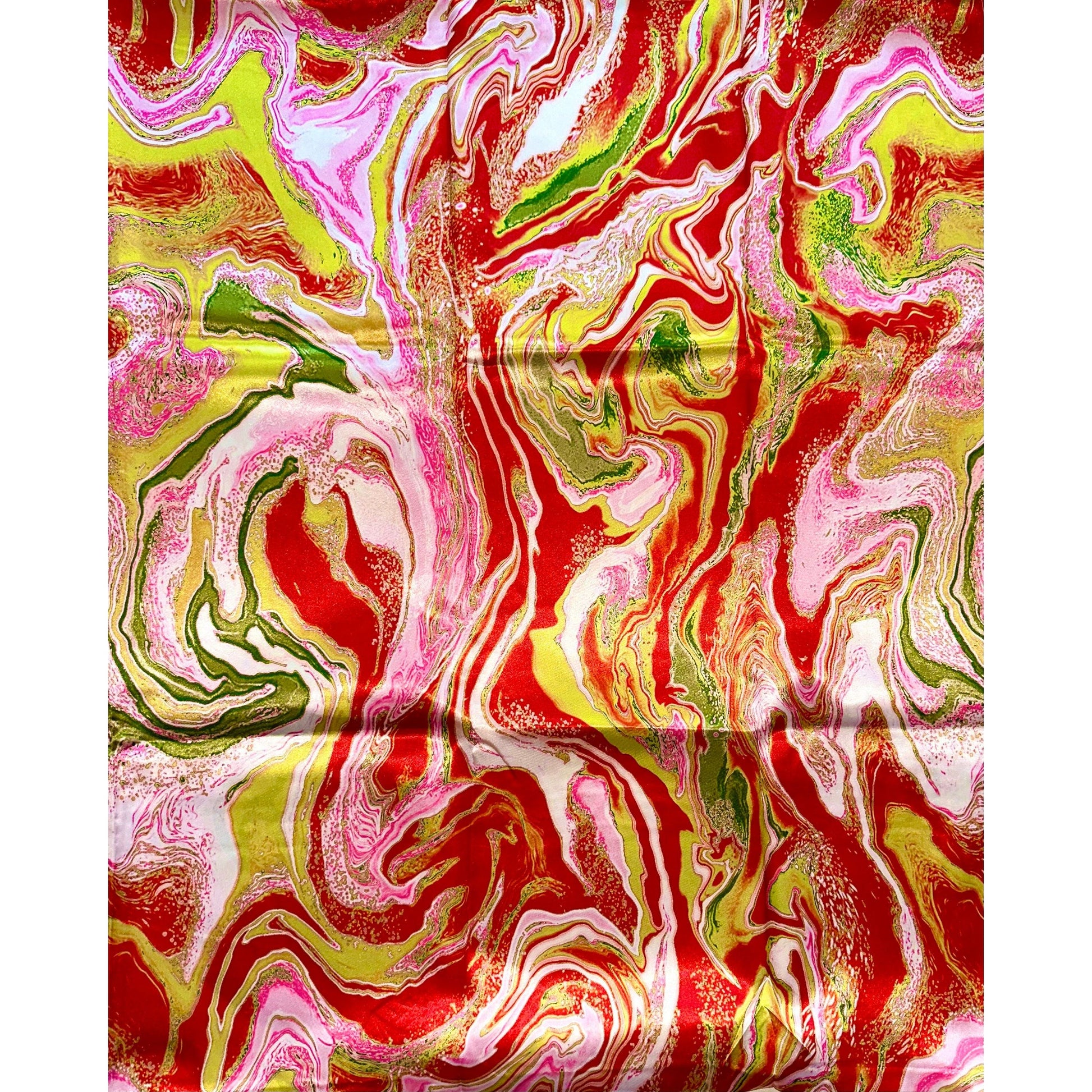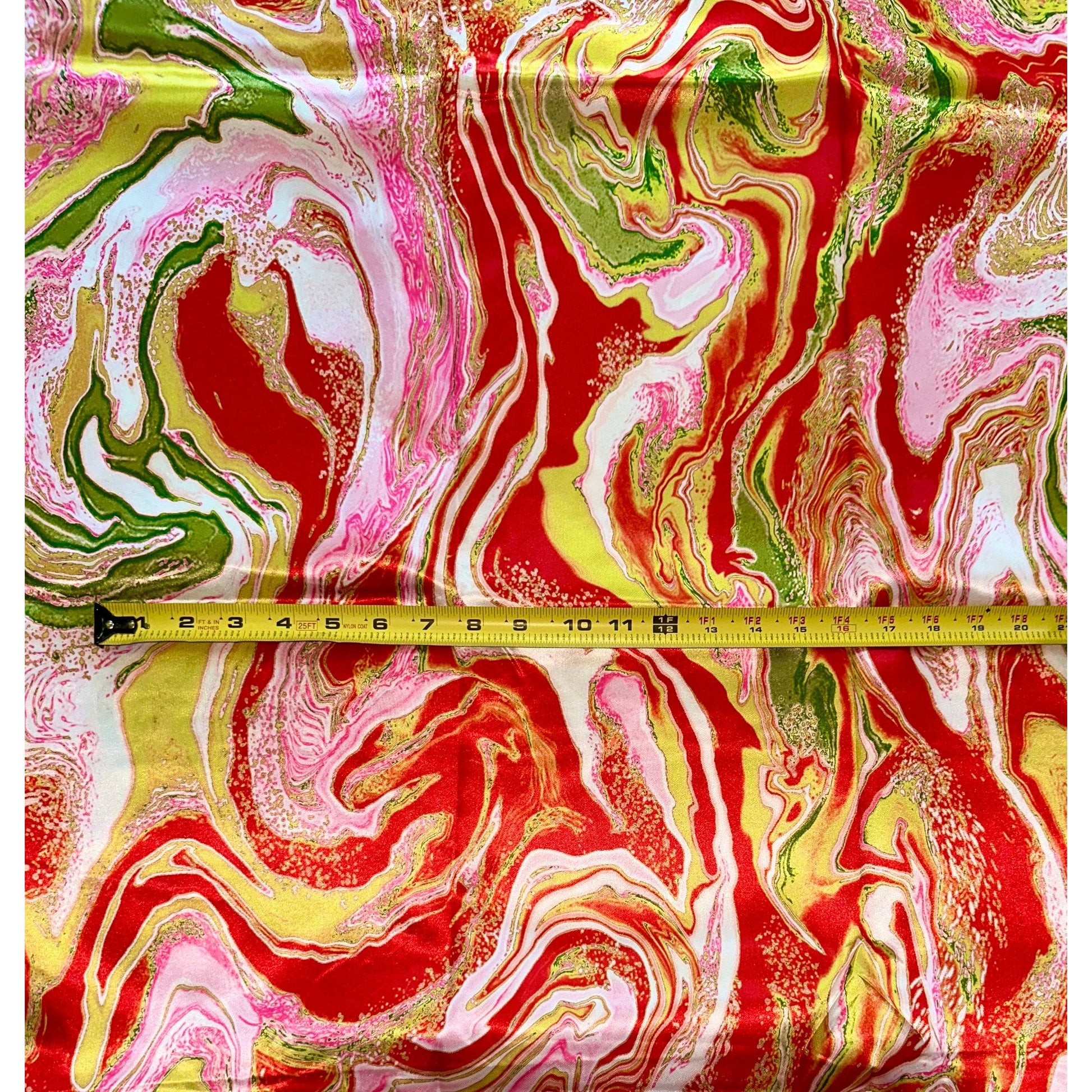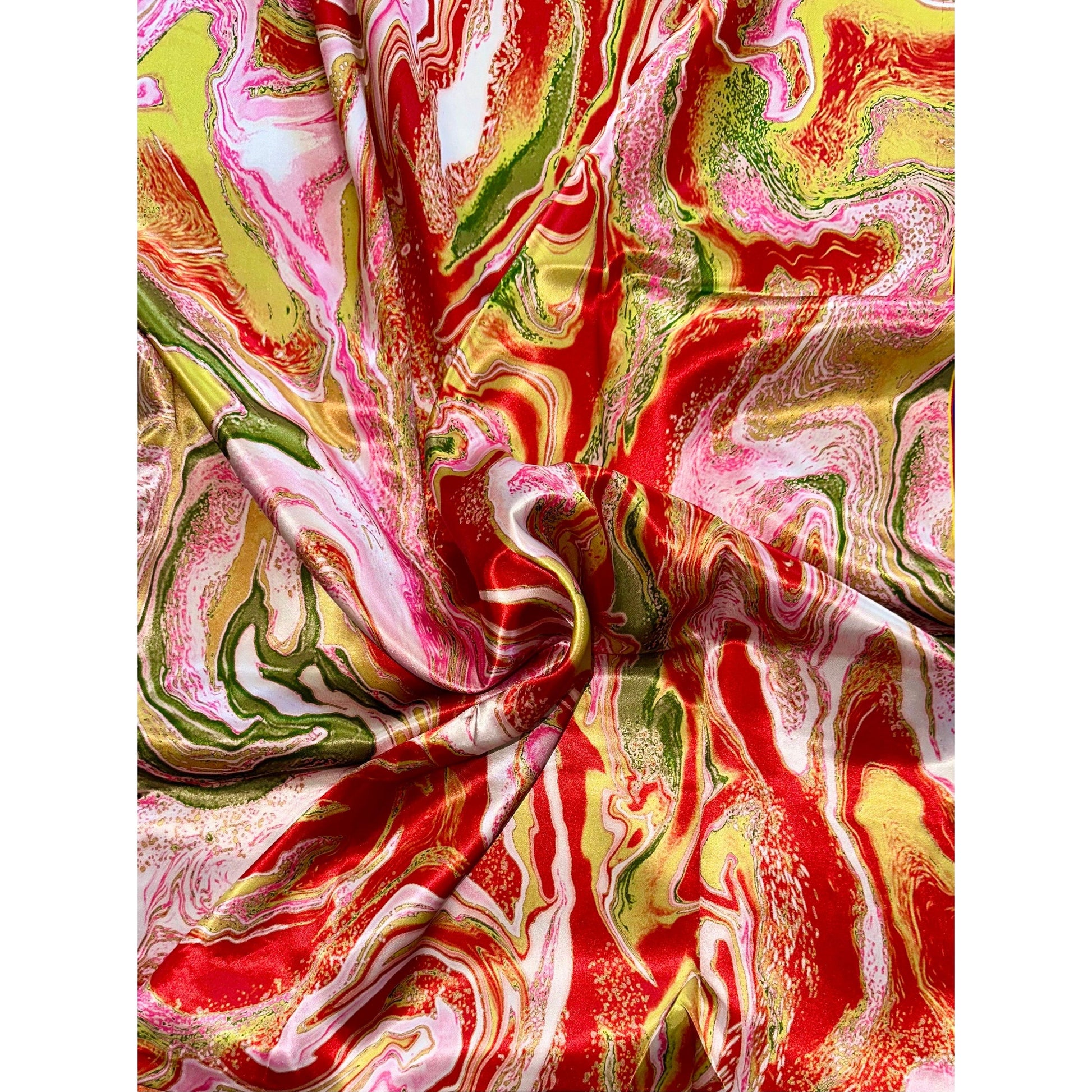 African Print, Satin Fabric - Red, Pink, Gold "Wasi Whirl", Yard or Wholesale