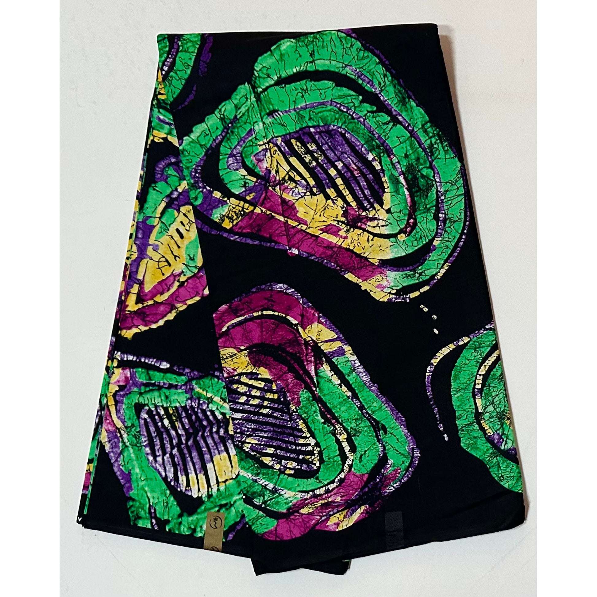 African Print Fabric/Ankara - Black, Green, Purple, Yellow 'Shayo Circle', YARD or WHOLESALE