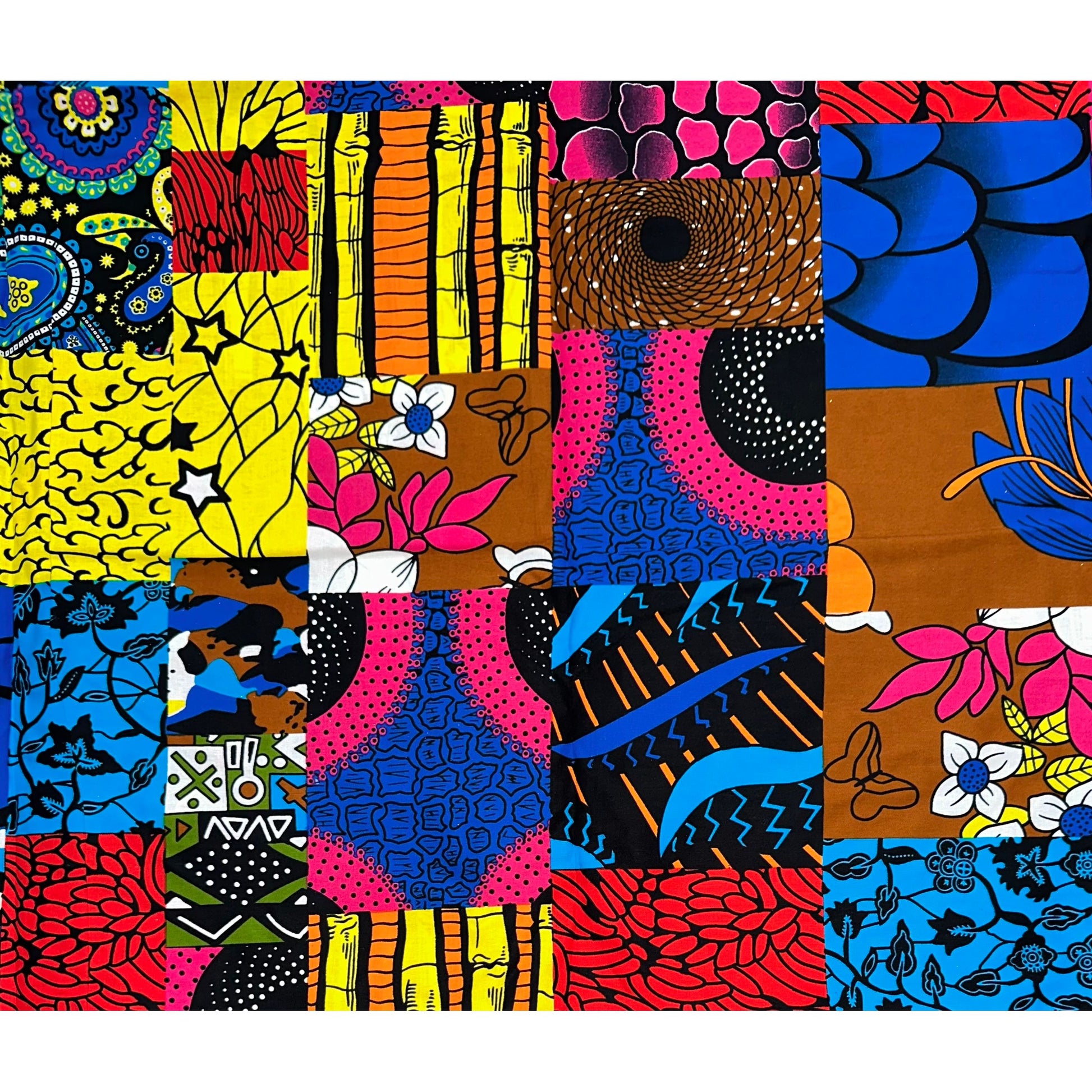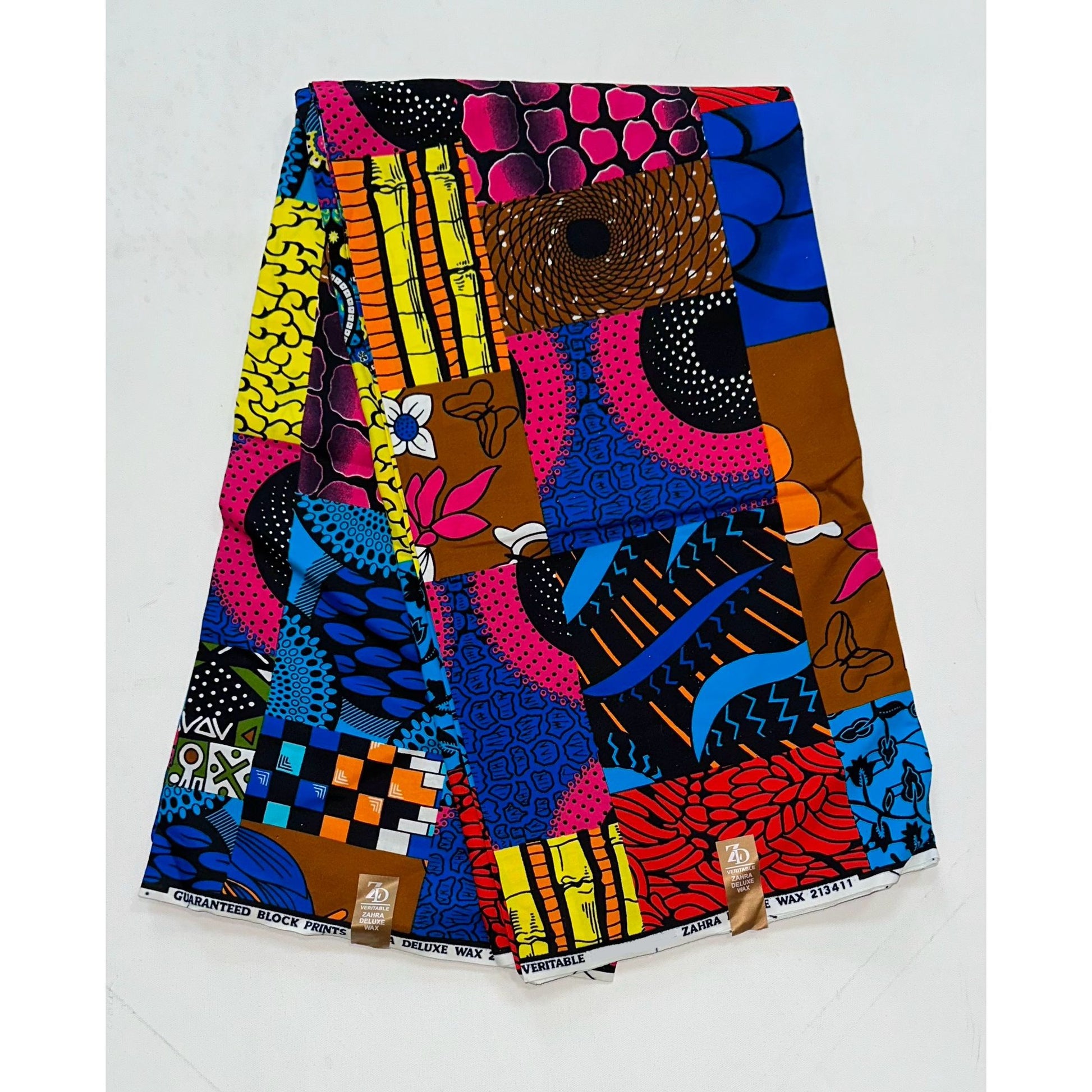 African Print Fabric/Ankara - Blue, Pink, Yellow, Red, Brown ‘Undefeated Charm' Design, YARD or WHOLESALE