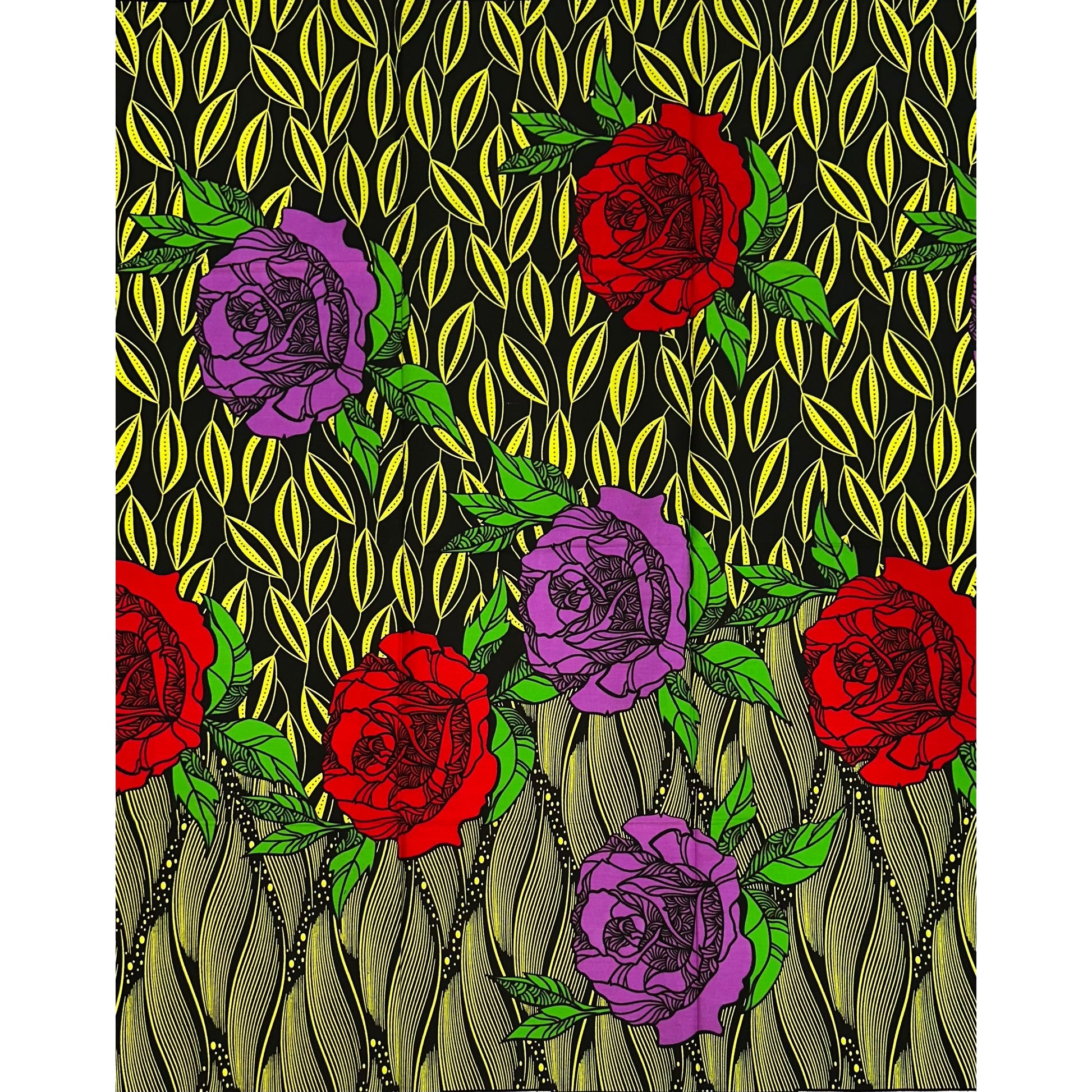 African Print Fabric/ Ankara - Yellow, Brown, Red, Purple, Green 'Ogba Rose,’ 1 YARD