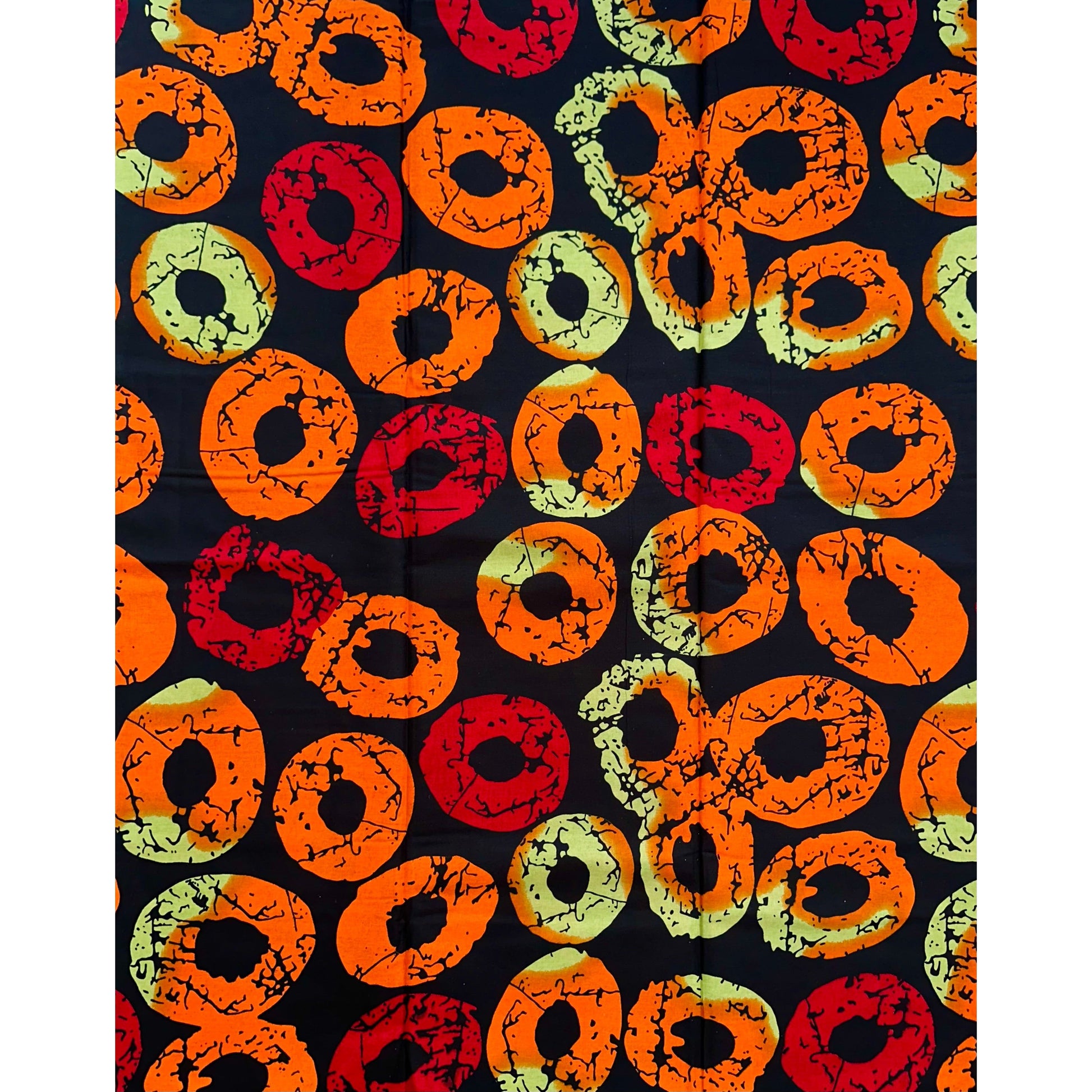 African Print Fabric/ Ankara - Black, Red, Orange, Beige 'Rings of Adenta’ YARD or WHOLESALE