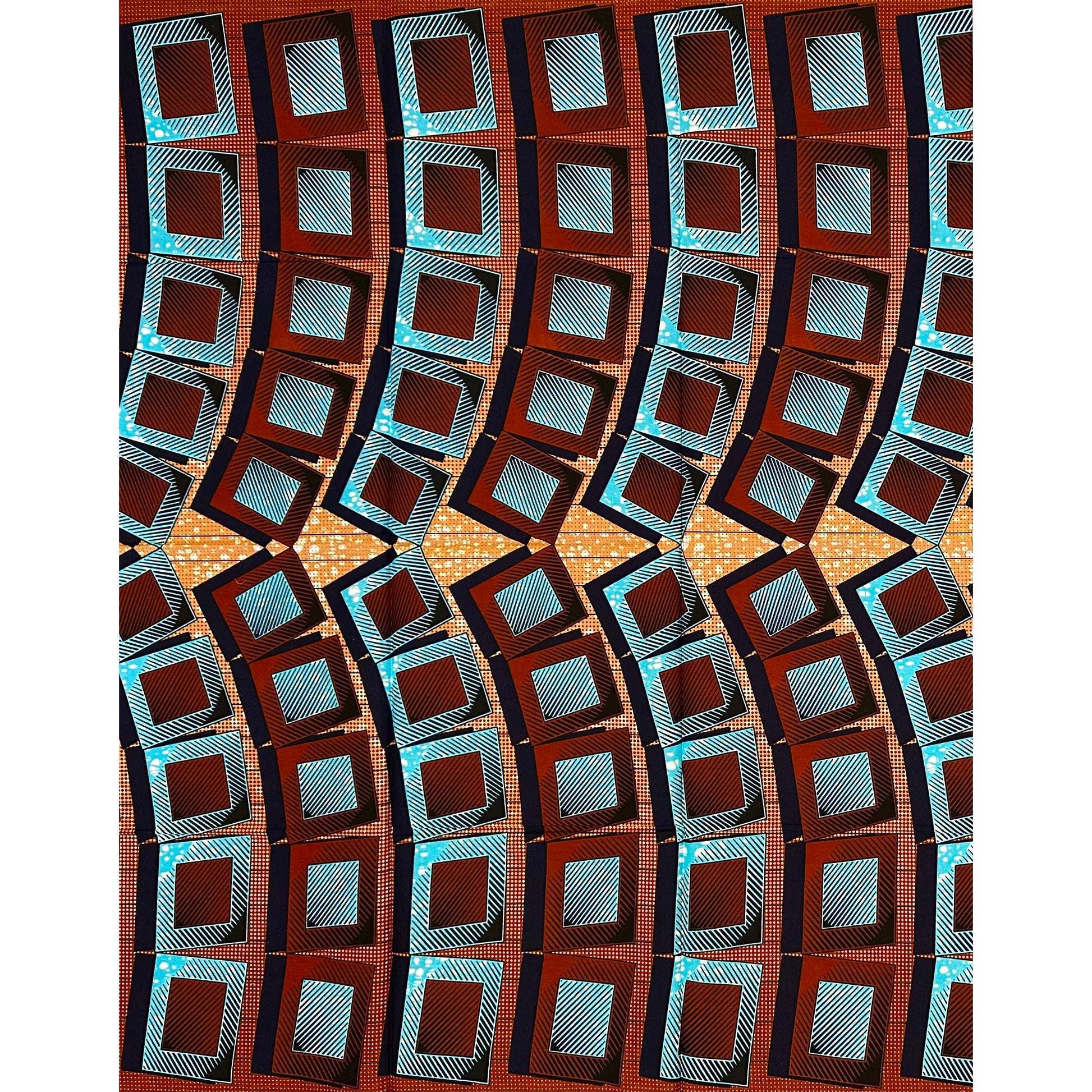 African Print Fabric/ Ankara - Blue, Brown ‘Heritage Block', ~1 YARD