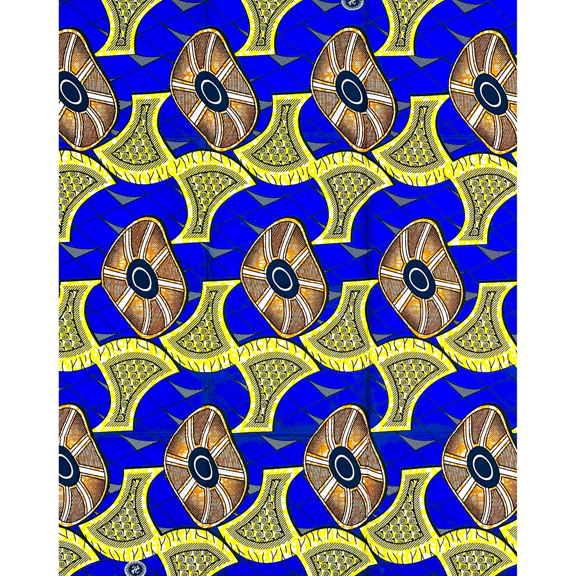 African Print Fabric/ Ankara - Blue, Yellow, Orange ‘Oba’s Vanguard' Design, 1 YARD