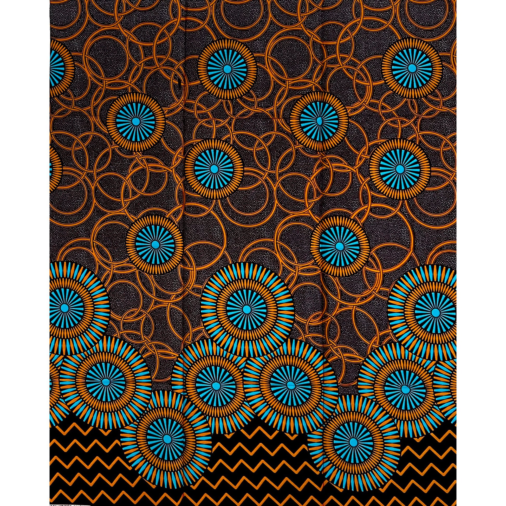 African Print Fabric/ Ankara - Brown, Blue “Sunrise Medallion', 1 YARD