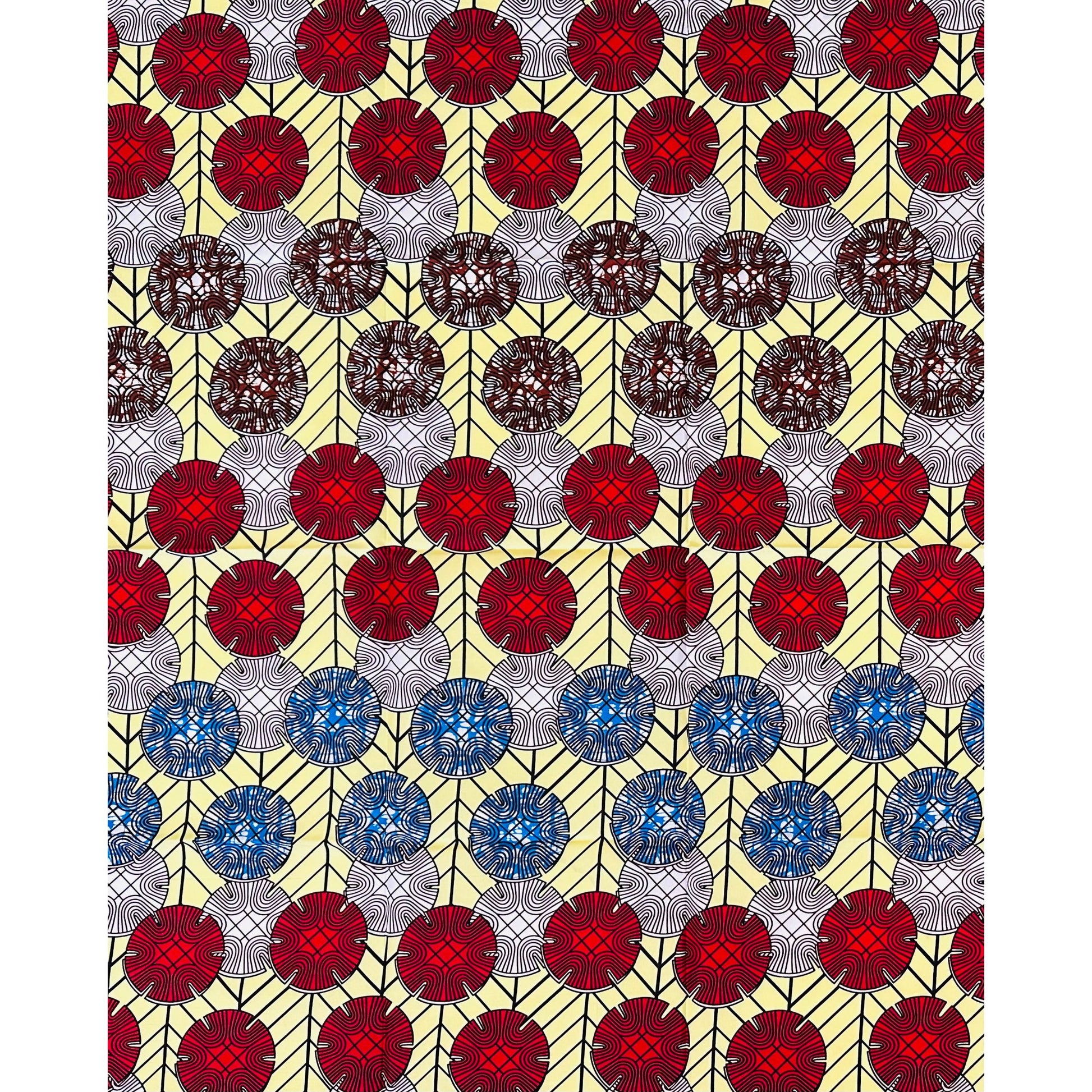 African Print Fabric/Ankara - Beige, Red, Blue, Brown "Unity Nodes", 1 Yard