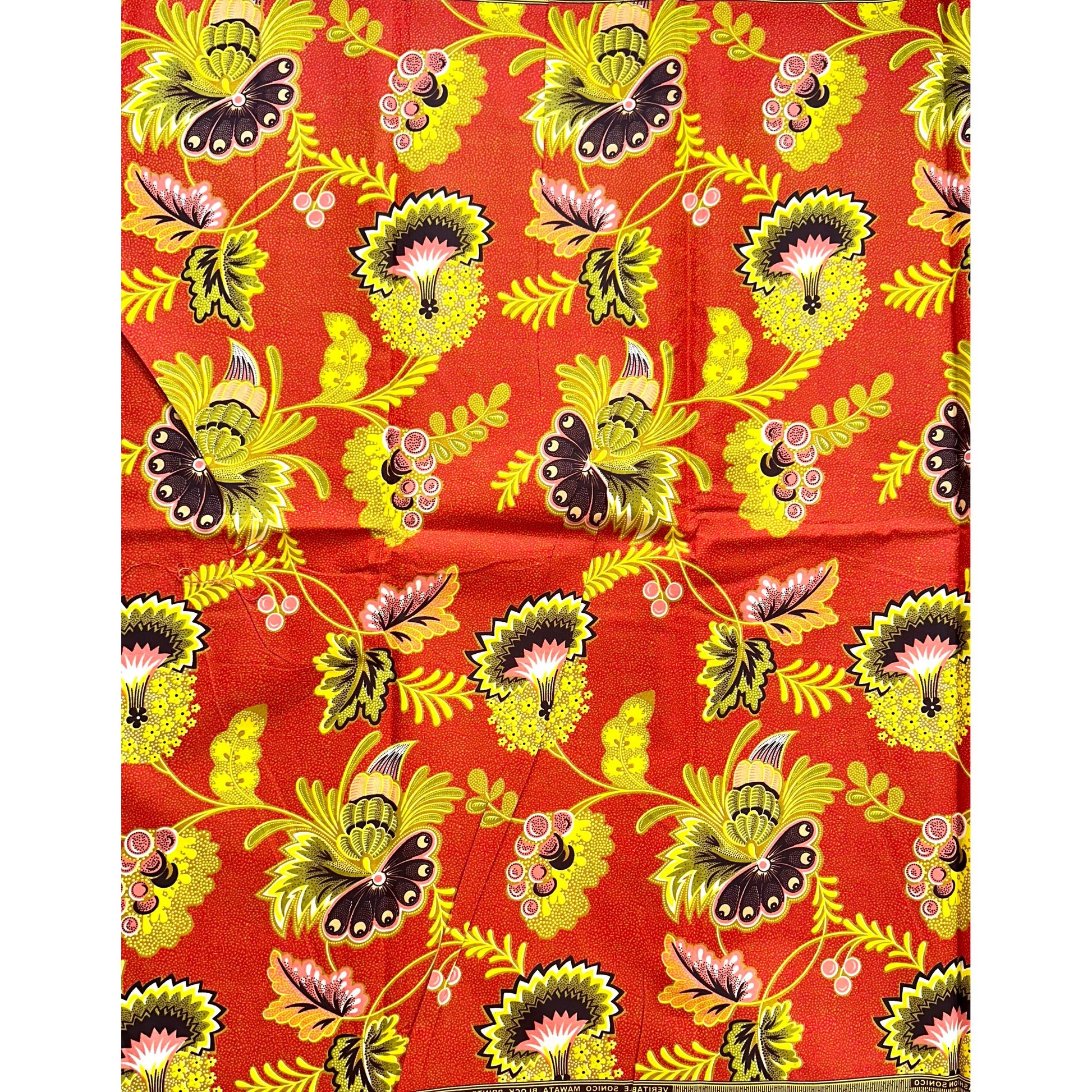 African Print Fabric - Red, Yellow, Brown, Pink 'Hapi', YARD or WHOLESALE