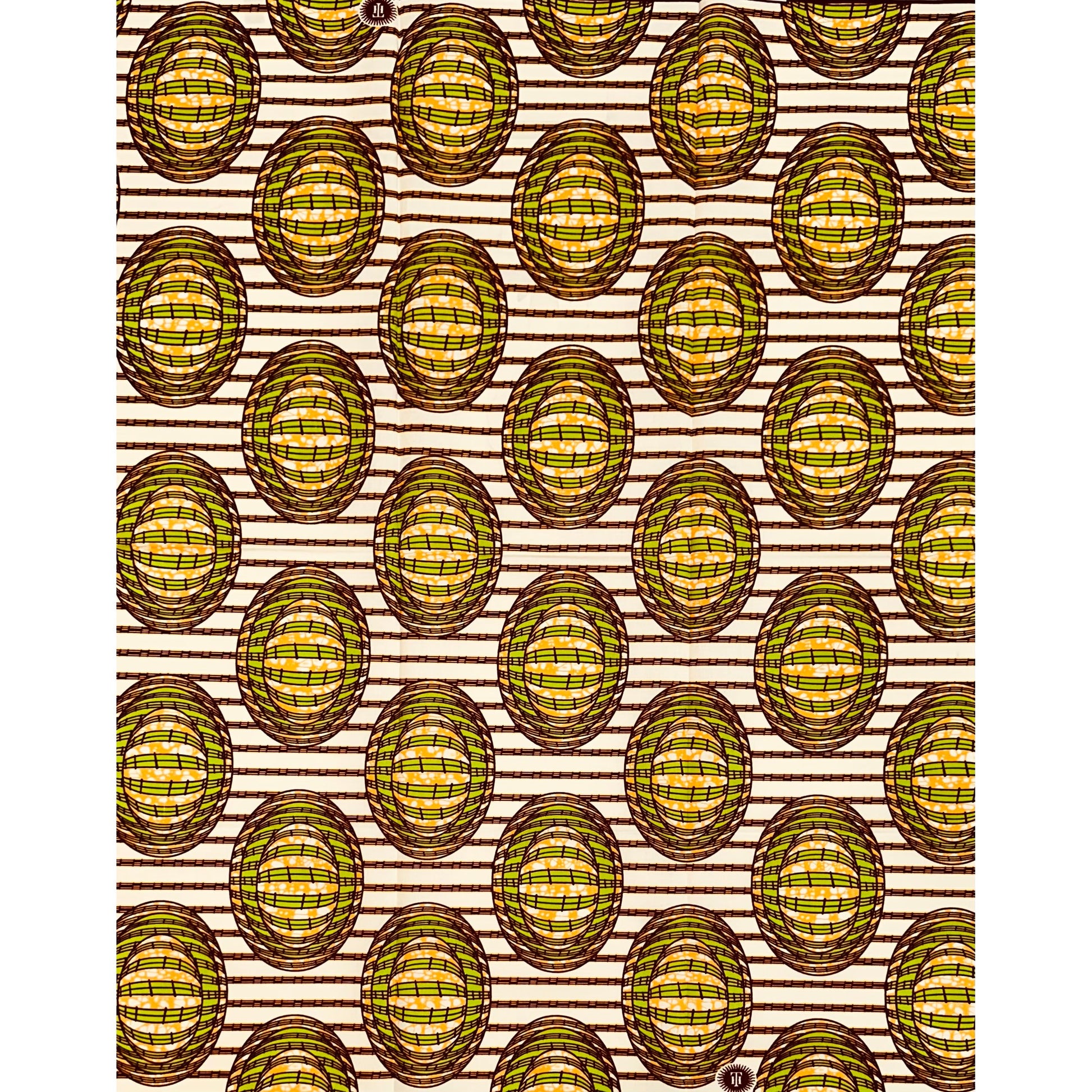 African Print Fabric/ Ankara - Cream, Brown, Green ‘Garden Egg' Design, YARD