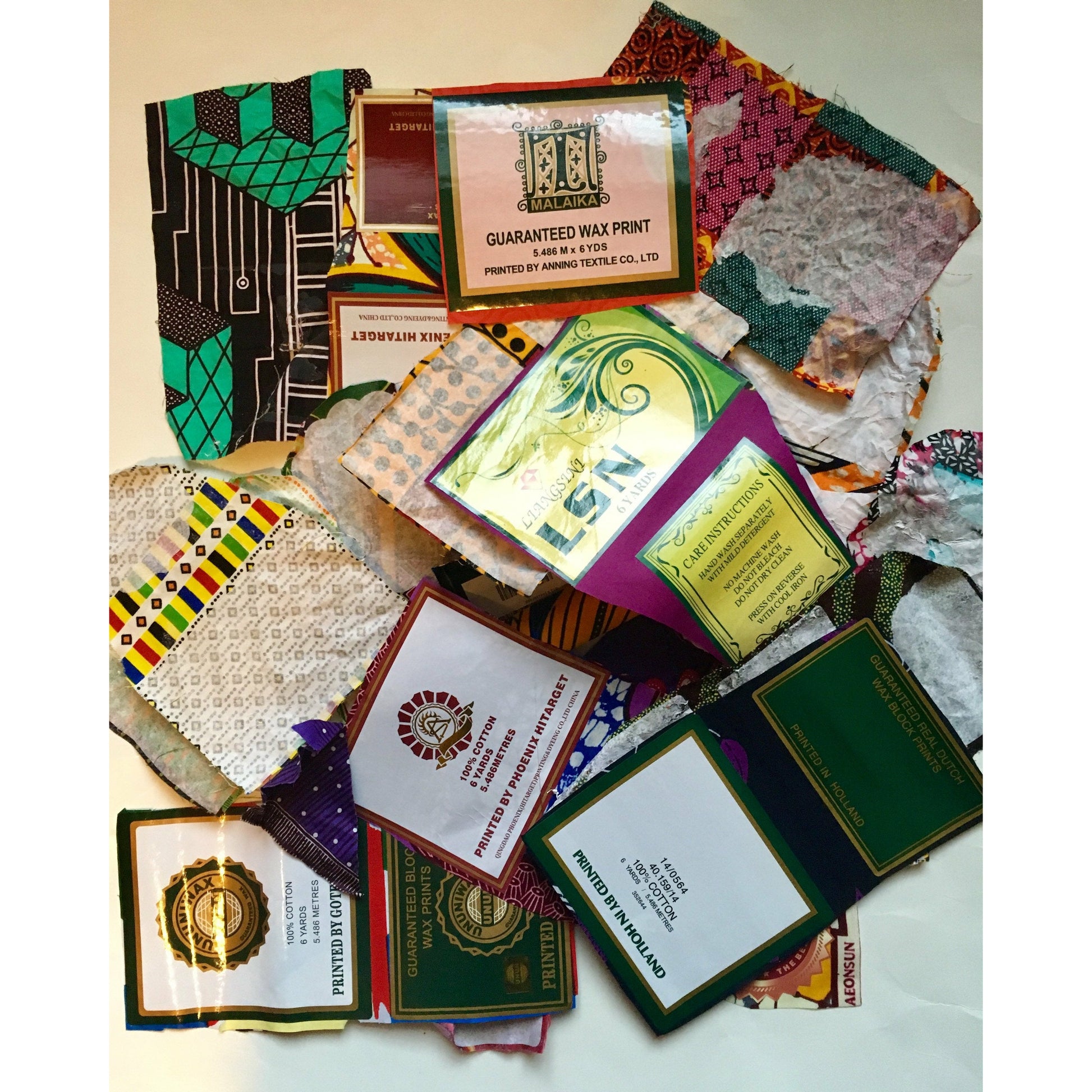 This listing is for 40, 75 or 150 pieces of various size ankara fabric that may or may not have the manufacturers label on one side (you choose).